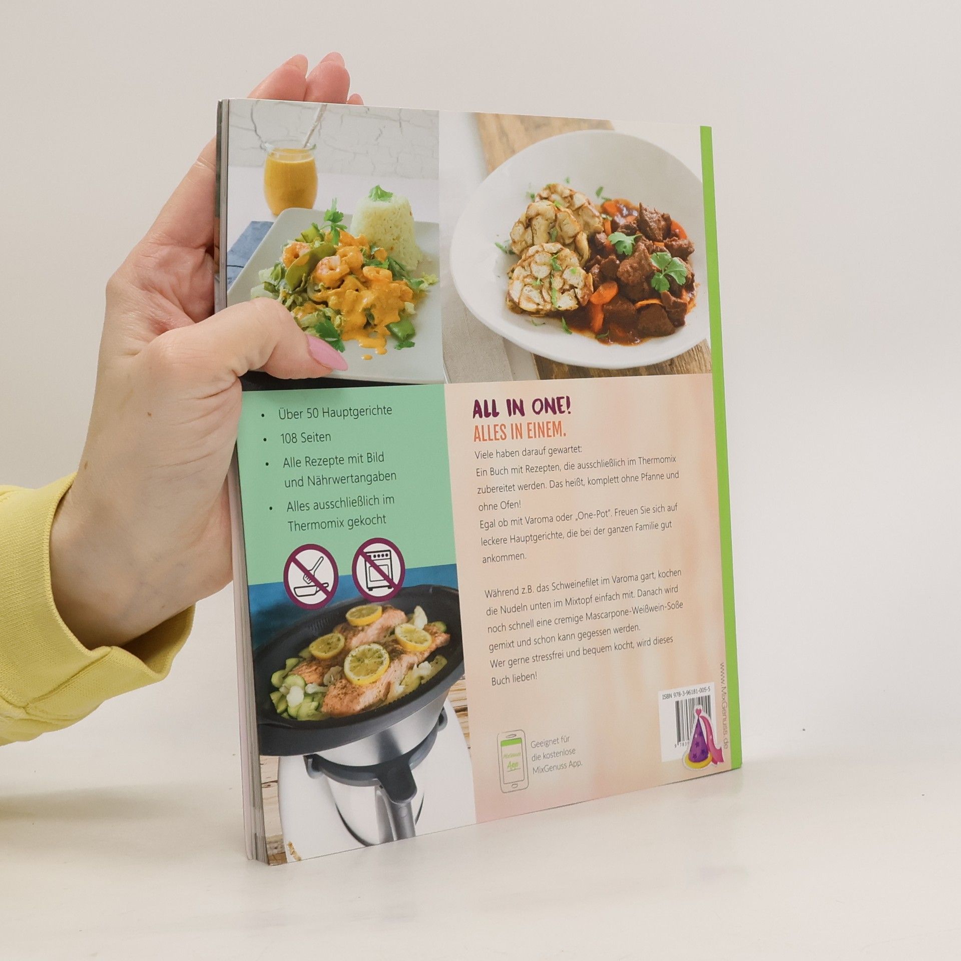 Ein Buch mit Rezepten, die ausschließlich im Thermomix zubereitet werden, ganz ohne Pfanne und Ofen! Ob mit Varoma oder „One-Pot“, hier finden Sie köstliche Hauptgerichte, die der ganzen Familie schmecken. Während beispielsweise das Schweinefilet im Varoma gart, kochen die Nudeln im Mixtopf einfach mit. Dazu wird schnell eine cremige Mascarpone-Weißwein-Soße gemixt – ein stressfreies Kochen für alle, die es bequem mögen! Die Rezeptübersicht umfasst eine Vielzahl von Gerichten: Fleischliebhaber können sich auf Pesto-Hähnchen mit Gnocchettini, Schweinefilet in Mascarpone-Weißweinsoße und Gulasch mit Semmelknödeln freuen. Für Fischfans gibt es Zitronenlachs mit Honig-Senf-Soße und Garnelen-Erdnuss-Curry. Vegetarische Gerichte wie Spinattortellini mit Mozzarellabällchen und buntes Gemüsecurry runden das Angebot ab. Darüber hinaus sind auch süße Leckereien wie Schichtkäse-Rauten mit Himbeersoße und Mohn-Schupfnudeln mit Fruchtkompott enthalten. Dieses Buch bietet eine breite Palette an Rezepten, die einfach zuzubereiten sind und für jeden Geschmack etwas bereithalten. Genießen Sie die Vielfalt und die unkomplizierte Zubereitung!