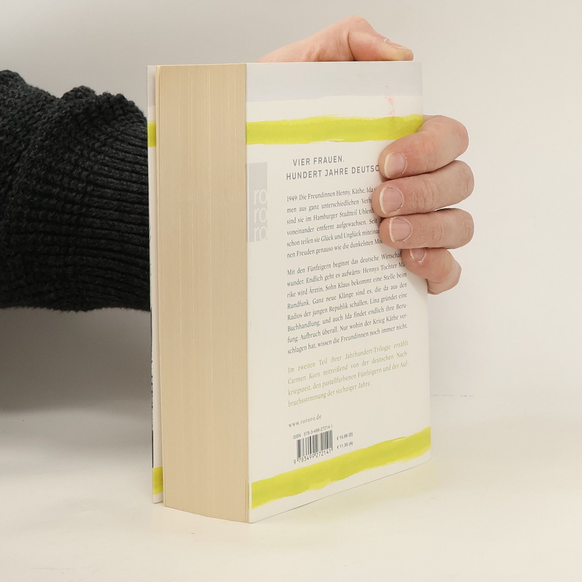 Vier Frauen. Hundert Jahre Deutschland.1949: Die Freundinnen Henny, Käthe, Ida und Lina stammen aus ganz unterschiedlichen Verhältnissen. Dabei sind sie im Hamburger Stadtteil Uhlenhorst nicht weit voneinander entfernt aufgewachsen. Seit Jahrzehnten schon teilen sie Glück und Unglück miteinander, die kleinen Freuden genauso wie die dunkelsten Momente. Mit den Fünfzigern beginnt das deutsche Wirtschaftswunder. Endlich geht es aufwärts: Hennys Tochter Marike wird Ärztin, Sohn Klaus bekommt eine Stelle beim Rundfunk. Ganz neue Klänge sind es, die da aus den Radios der jungen Republik schallen. Lina gründet eine Buchhandlung, und auch Ida findet endlich ihre Berufung. Aufbruch überall. Nur wohin der Krieg Käthe verschlagen hat, wissen die Freundinnen noch immer nicht.Im zweiten Teil ihrer Jahrhundert-Trilogie erzählt Carmen Korn mitreißend von der deutschen Nachkriegszeit, den pastellfarbenen Fünfzigern und der Aufbruchsstimmung der Sechzigerjahre.
