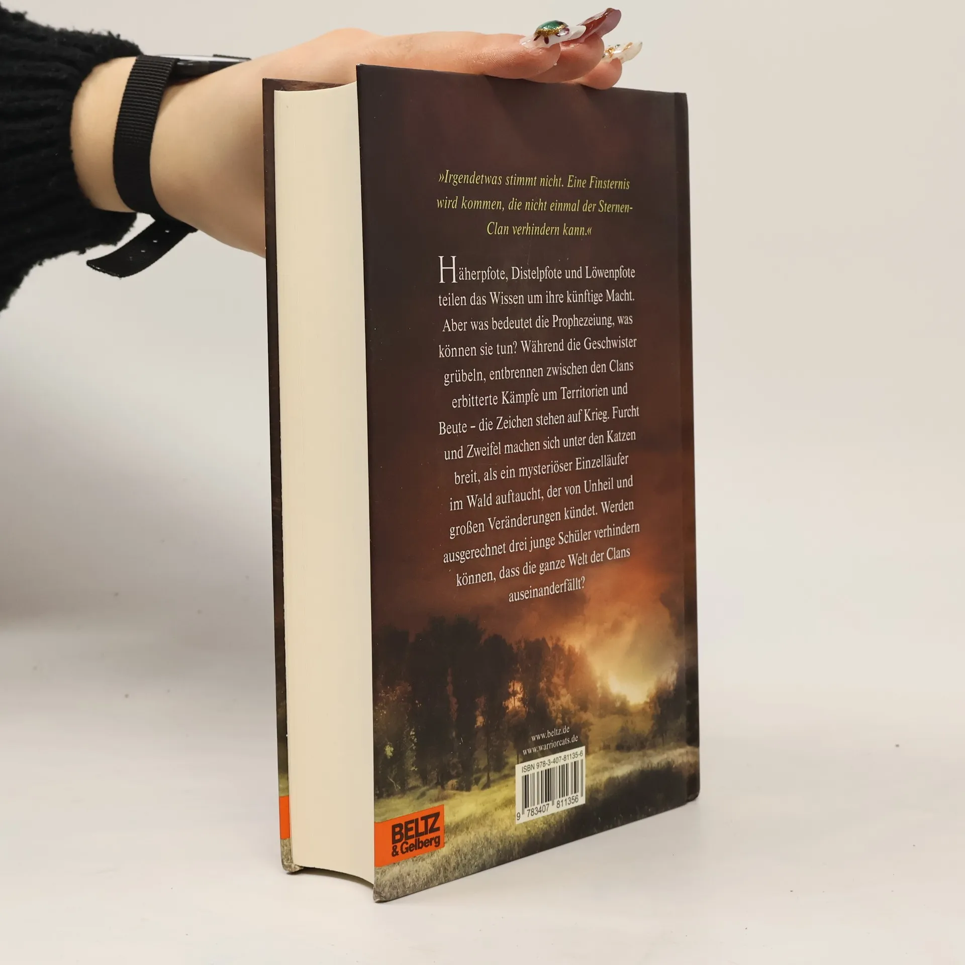 'Irgendetwas stimmt nicht. Eine Finsternis wird kommen, die nicht einmal der SternenClan verhindern kann. Und wenn sie kommt, werden wir nichts tun können, um die Clans zu schützen.' Häherpfote, Distelpfote und Löwenpfote teilen das Wissen um ihre künftige Macht. Aber was bedeutet die Prophezeiung, was können sie tun? Während die Geschwister grübeln, entbrennen zwischen den Clans erbitterte Kämpfe um Territorien und Beute - die Zeichen stehen auf Krieg. Furcht und Zweifel machen sich unter den Katzen breit, als ein mysteriöser Einzelläufer im Wald auftaucht, der von Unheil und großen Veränderungen kündet. Plötzlich scheint nicht einmal das Gesetz der Krieger mehr sicher. Werden ausgerechnet drei junge Schüler verhindern können, dass die ganze Welt der Clans auseinanderfällt?