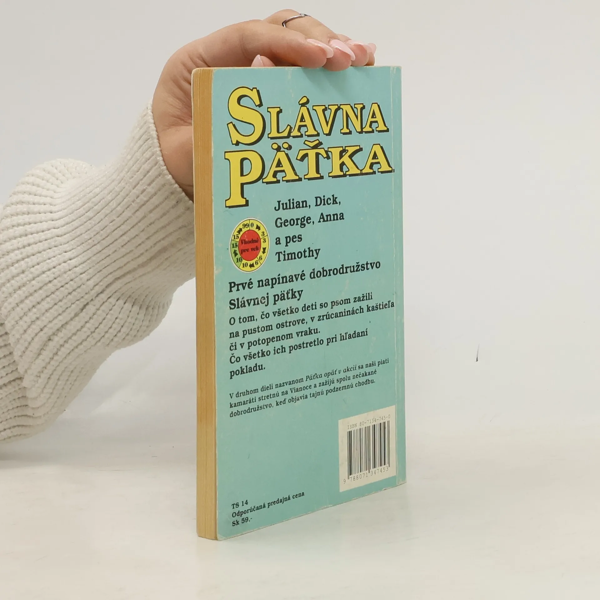 Prvé napínavé dobrodružstvo Slávnej päťky Slávna päťka, to sú v skutočnosti štyri deti a pes. Julian, Dick, George, či vlastne Georgina, Anna a pes Timothy. Čo všetko zažili na pustom ostrove? Aké dobrodružstvo ich postretlo pri plavbe na mori či v noci v zrúcanine starého hradu? Čo objavili v starom potopenom vraku? A ako vyzerá ozajstné hľadanie pokladu? Vhodné pre vek: 10 - 15 rokov Druhé vydanie... celý text