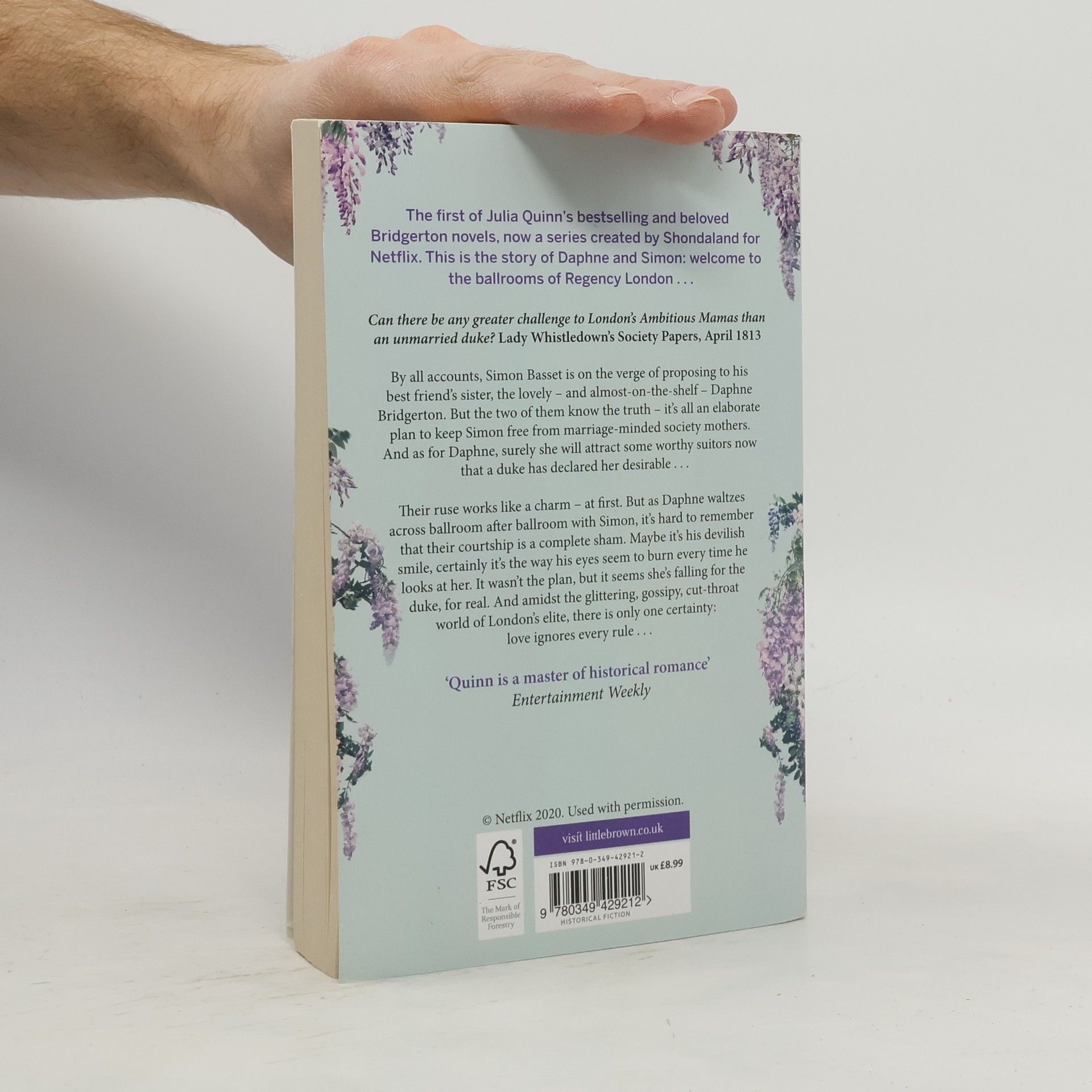 The rakish Duke of Hastings will stop at nothing to hold the marriage-mongers and matchmakers of his town at bay, even if it means pretending to be engaged to the lovely Daphne Bridgerton, but strong feelings soon intervene on both sides of this convenient arrangement.