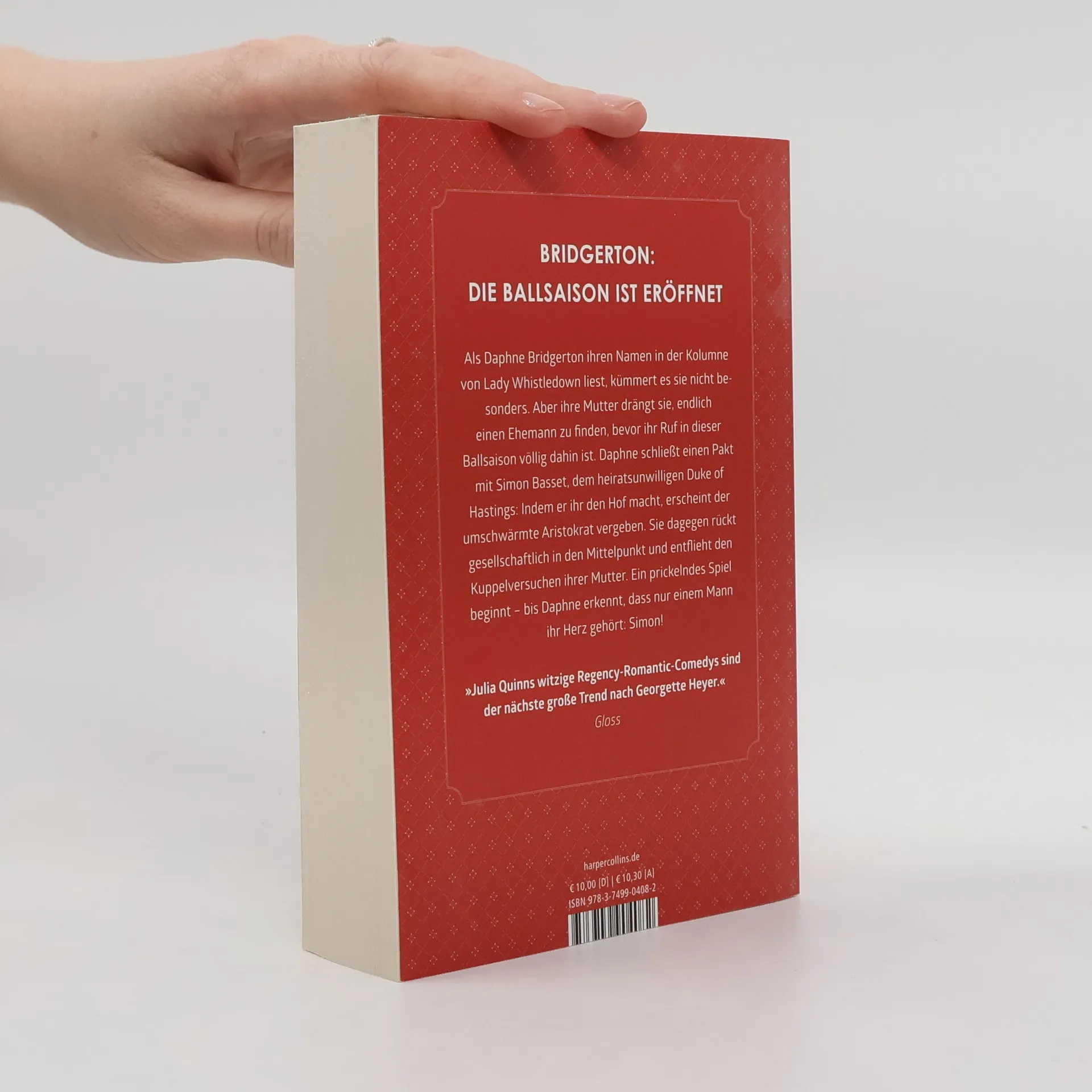 Bridgerton: Die Inspiration zur Netflix-Serie Die ganze Geschichte von Daphne und Simon – jetzt mit zusätzlichem Epilog Als Daphne Bridgerton ihren Namen in der Kolumne von Lady Whistledown liest, kümmert es sie nicht besonders. Aber ihre Mutter drängt sie, endlich einen Ehemann zu finden, bevor ihr Ruf in dieser Ballsaison völlig dahin ist. Daphne schließt einen Pakt mit Simon Basset, dem heiratsunwilligen Duke of Hastings: Indem er ihr den Hof macht, erscheint der umschwärmte Aristokrat vergeben. Sie dagegen rückt gesellschaftlich in den Mittelpunkt und entflieht den Kuppelversuchen ihrer Mutter. Ein prickelndes Spiel beginnt – bis Daphne erkennt, dass nur einem Mann ihr Herz gehört: Simon! »Julia Quinns witzige Regency-Romantic-Comedys sind der nächste große Trend nach Georgette Heyer.« Gloss »Wahrhaft die Jane Austen der Gegenwart.« Bestsellerautorin Jill Barnett
