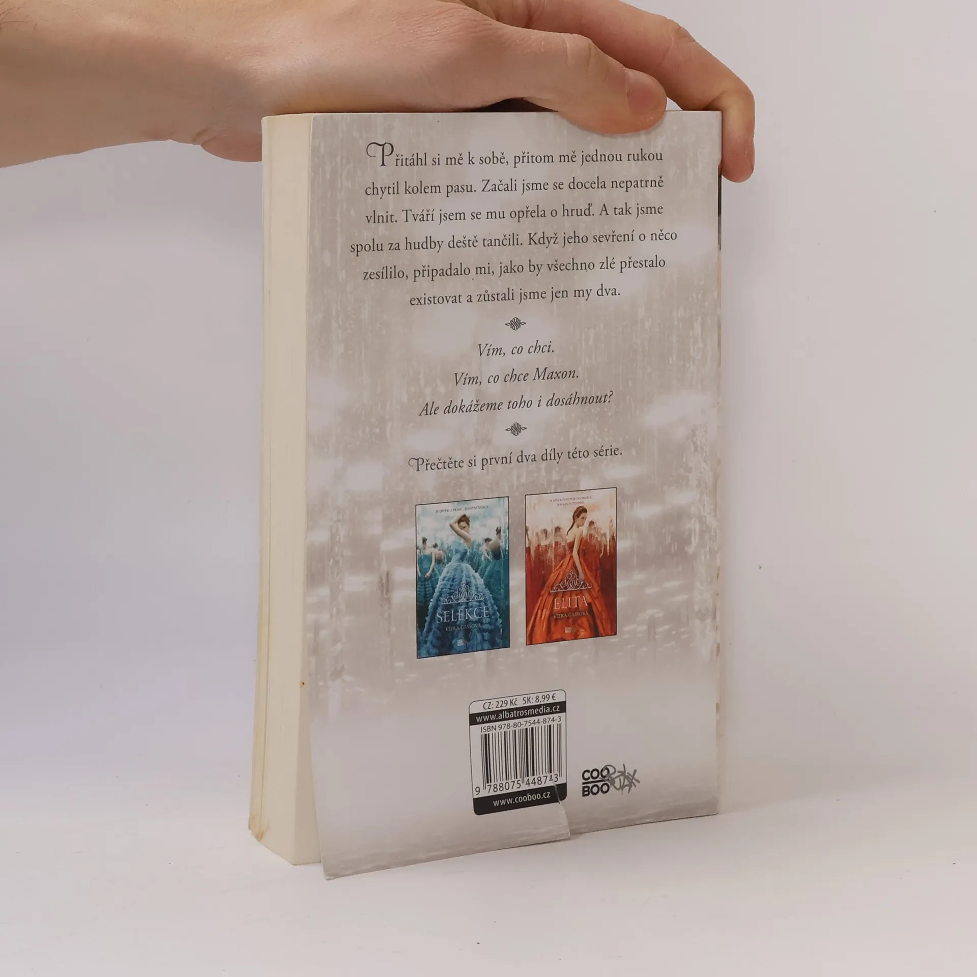Třetí kniha dystopické dívčí série. Dívce jménem America zbývá proti všemu očekávání jen krůček k vítězství ve hře o princovo srdce. Ten krůček ale nebude snadné učinit... Když byla America vybrána do Selekce, ani ve snu by ji nenapadlo, že by se ocitla na dosah samotné koruny, natož k srdci prince Maxona. S blížícím se koncem soutěže narůstají hrozby za branami paláce a America si uvědomuje, jak je lehké všechno ztratit a jak těžce bude muset za svou budoucnost bojovat.