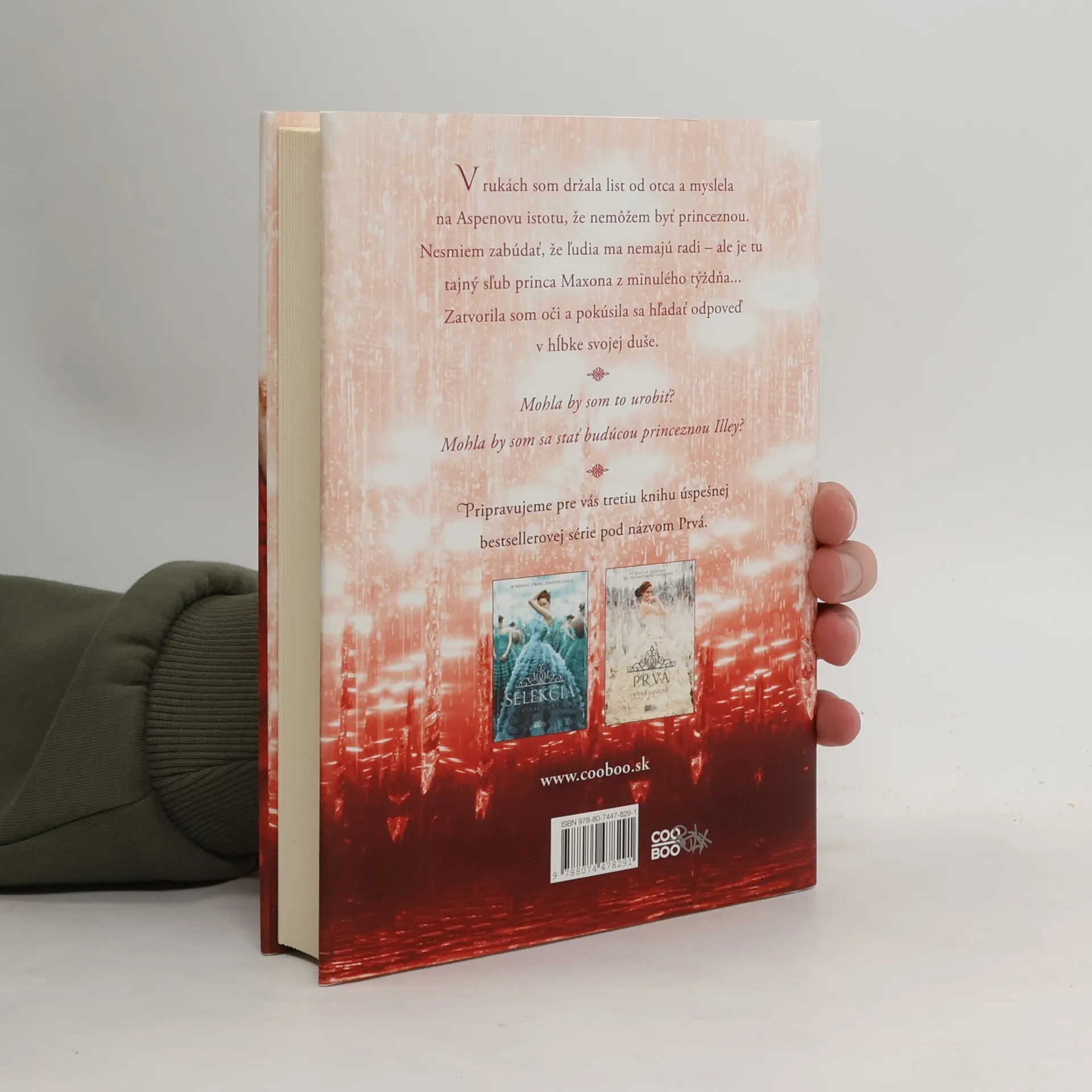 Súboj o vysnívaný život sa priostruje! Z tridsiatich piatich dievčat v Selekcii zostalo už len šesť elitných súperiek. America spolu s nimi naďalej bojuje o lásku princa Maxona, budúceho vládcu Illey, avšak stále si nie je istá, komu skutočne patrí jej srdce. Keď je s Maxonom, srdce sa jej chveje vzrušením, no zároveň sa obáva ich spoločnej budúcnosti. Pri Aspenovi, prvej veľkej láske, zas nedokáže zabudnúť na všetko krásne, čo spolu zažili. Elitné dievčatá sú však odhodlané získať princa pre seba za každú cenu. Konkurencia je stále tvrdšia, a preto sa aj America musí rozhodnúť. Neuľahčujú jej to ani rebeli, ktorí chcú zvrhnúť vládu kráľa, Maxonovho otca, a žiadajú zrušenie Selekcie. Keď si je America už istá svojím rozhodnutím, stane sa čosi nečakané a všetko sa zmení. Vyberie si napokon rozprávkový život s princom Maxonom alebo lásku Aspena, ktorý je jej bezpečným prístavom?