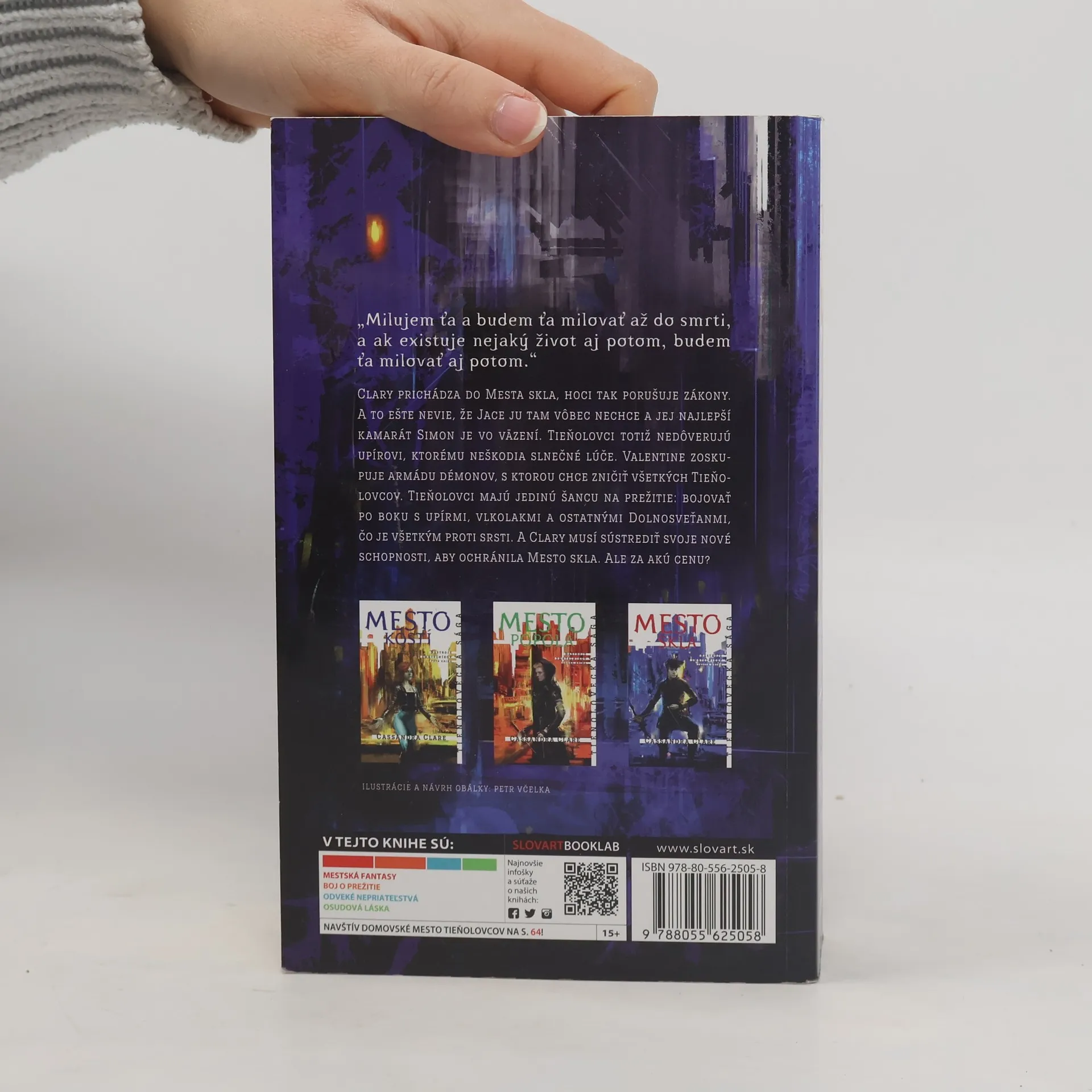Najobľúbenejšia mestská fantasy súčasnosti je Tieňolovecká sága! A preto vám prinášame prvé tri diely série Nástroje smrteľníkov s novými obálkami od nášho ilustrátora Petra Včelku. Clary Frayová by bola najradšej, keby sa všetko vrátilo do normálu. Ale čo je vlastne normál, keď nedávno zistila, že je Tieňolovkyňa, čo má zbavovať náš svet démonov, jej mama je v čarami vyvolanej kóme a Clary nemá pred zrakom skrytý Tieňosvet, čiže vidí všetkých vlkolakov, upírov a aj férov! Clary sa snaží zachrániť mamu, no musí sa postaviť zoči-voči svojej minulosti aj budúcnosti a odolávať chlapcovi, s ktorým nemôže nikdy byť...