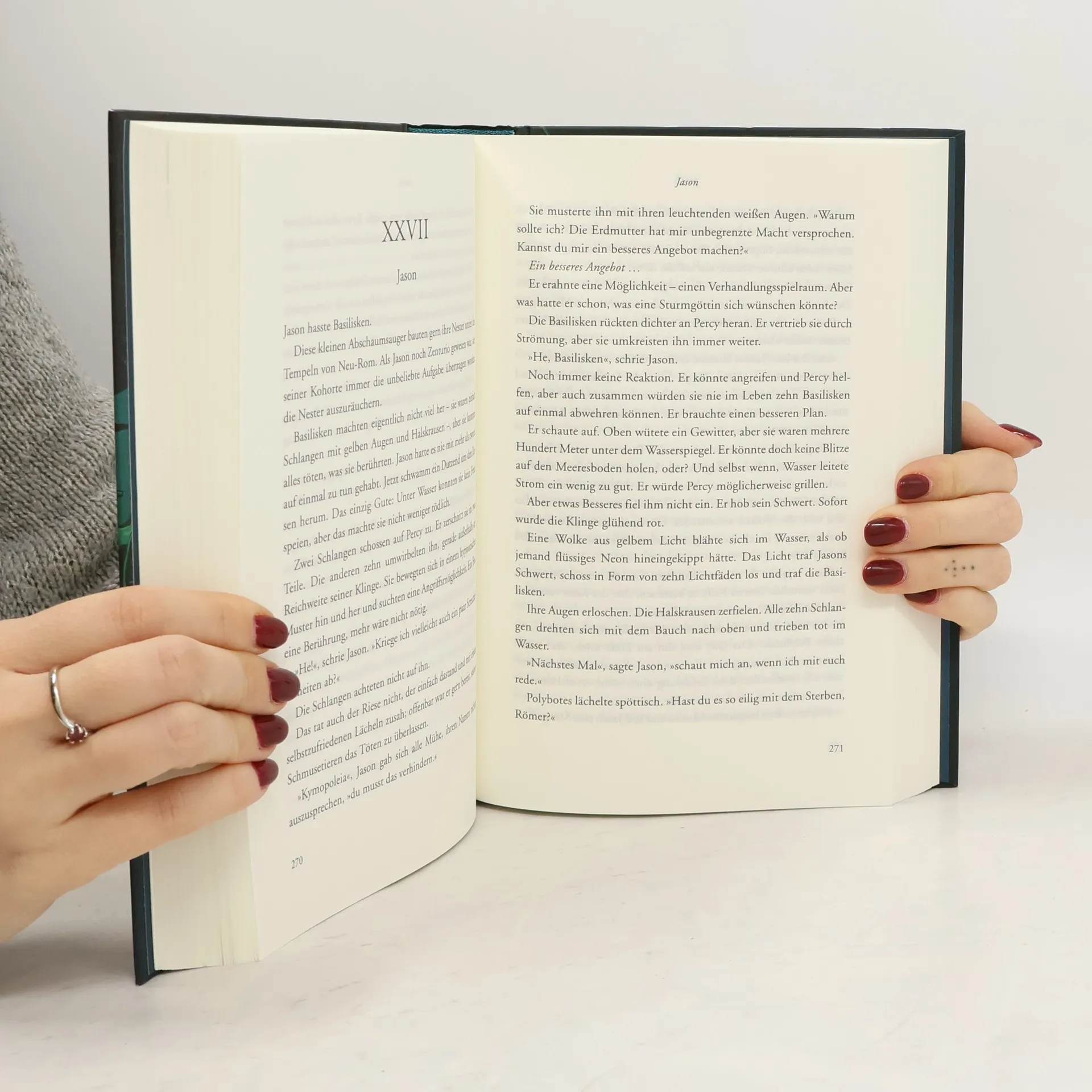 Die legendären Sieben stehen vor ihrer größten Herausforderung: Die Erdgöttin Gaia steht kurz vor dem Erwachen aus ihrem tausendjährigen Schlaf und benötigt nur noch das Blut zweier Halbgötter, um die Welt zu beherrschen. Percy und seine Freunde setzen alles daran, dies zu verhindern. Sie müssen sich nicht nur gegen Gaias Monsterarmee behaupten, sondern auch den drohenden Krieg zwischen den römischen und griechischen Halbgöttern im Camp Half-Blood stoppen. Ein Wettlauf gegen die Zeit beginnt! In dieser Fortsetzung der beliebten Jugendbuchreihe, die auf den Abenteuern von Percy Jackson basiert, wird Jason, der ohne Erinnerung auf einer Klassenfahrt aufwacht, als Sohn des Jupiter in die Reihe der legendären Halbgötter aufgenommen. Gemeinsam mit seinen Freunden, darunter Piper, Leo, Percy, Annabeth, Hazel und Frank, müssen sie den Olymp gegen die Urgöttin Gaia verteidigen. Nur durch die Vereinigung der römischen und griechischen Halbgötter haben sie eine Chance im Kampf gegen das Böse. Diese fünfteilige Fantasy-Reihe begeistert mit einem spannenden Mix aus Action, Witz und Mythologie und richtet sich an Leser*innen ab 12 Jahren sowie an Fans der griechisch-römischen Mythologie.