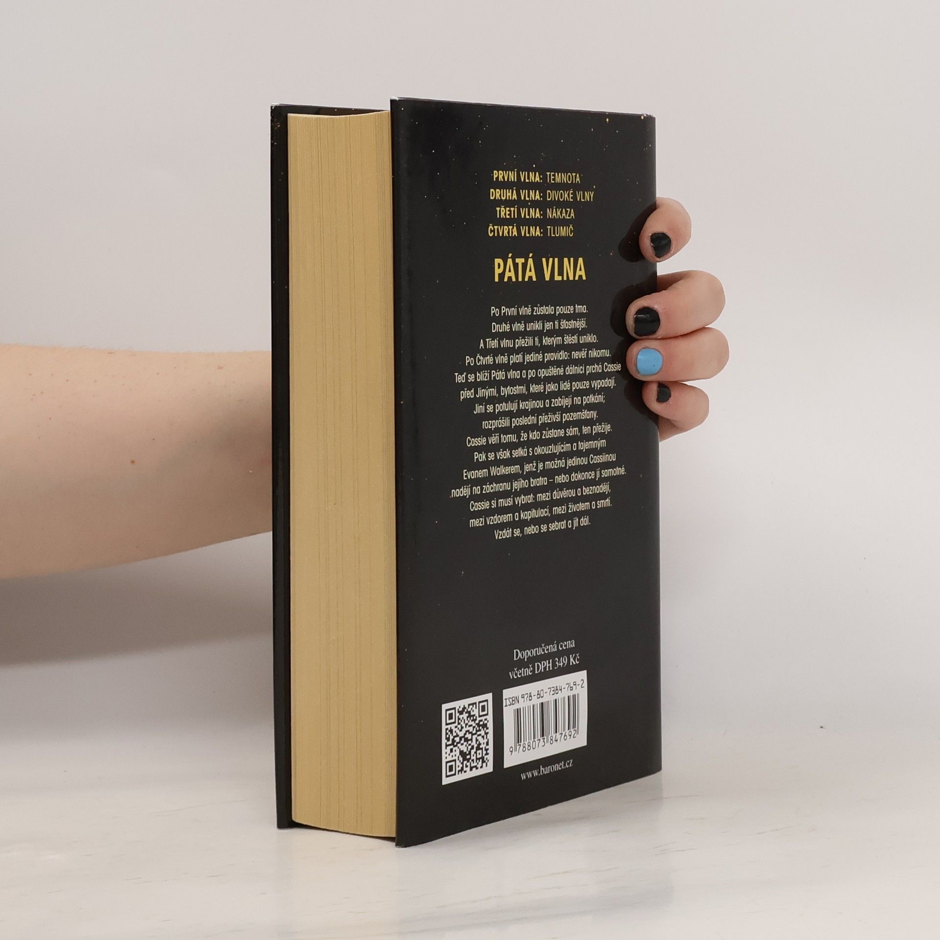 Po první vlně zůstala pouze tma. Druhé vlně unikli jen ti šťastnější. A třetí vlnu přežili ti, kterým štěstí uniklo. Po čtvrté vlně platí jediné pravidlo: nevěř nikomu. Teď se blíží vlna pátá a po opuštěné dálnici prchá Cassie před Jinými, bytostmi, které jako lidé pouze vypadají. Jiní se potulují krajinou a zabíjejí na potkání; rozprášili poslední přeživší pozemšťany. Cassie věří tomu, že kdo zůstane sám, ten přežije. Pak se však setká s okouzlujícím a tajemným Evanem Walkerem, jenž je možná jedinou Cassiinou nadějí na záchranu jejího bratra – nebo dokonce jí samotné. Cassie si musí vybrat: mezi důvěrou a beznadějí, mezi vzdorem a kapitulací, mezi životem a smrtí. Vzdát se, nebo se sebrat a jít dál.