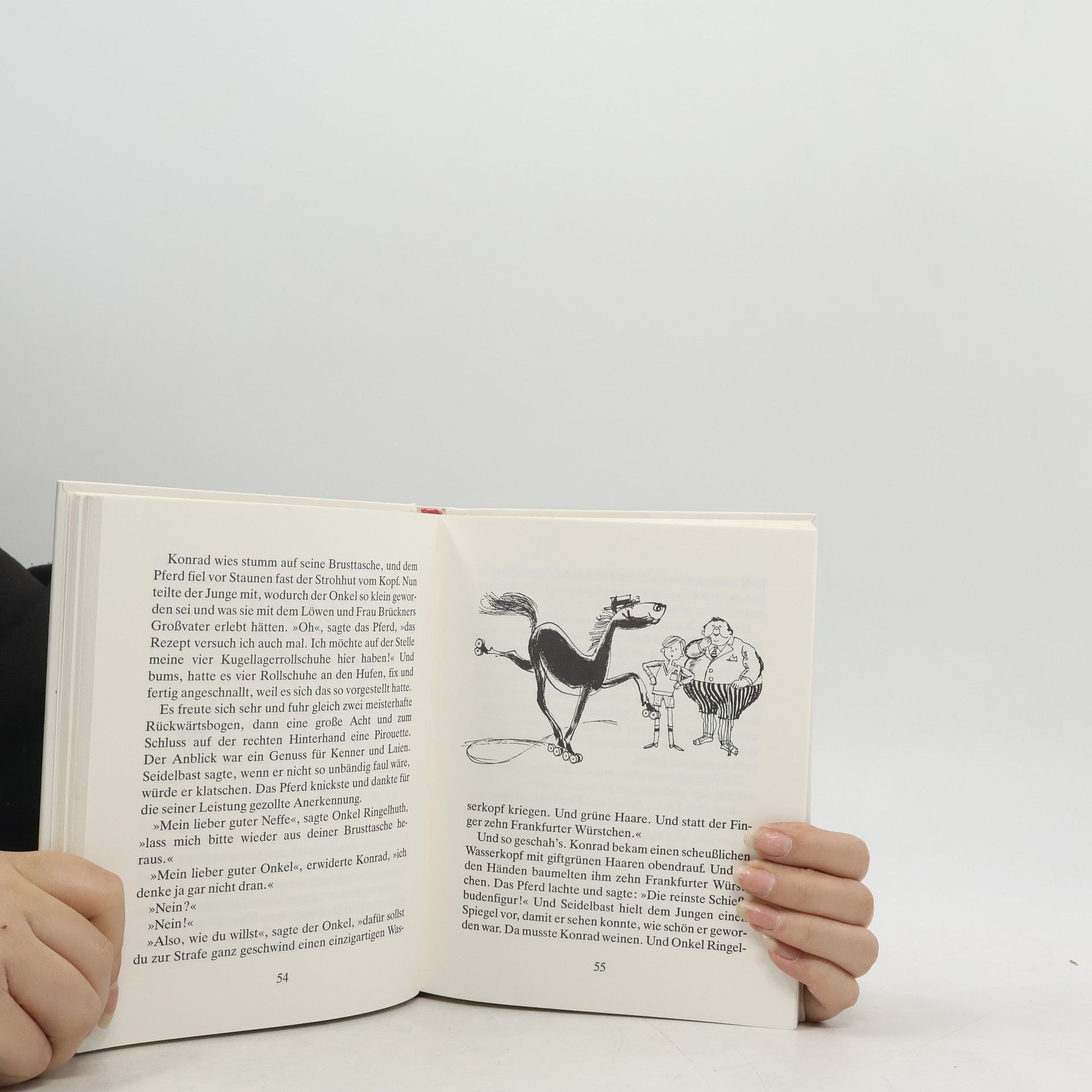 Der 35. Mai? Na, bei einem so verrückten Datum merkt ja wohl jeder gleich, was los ist. An so einem Tag müssen Kondrad und sein Onkel Ringelhuth ja die unwahrscheinlichsten Dinge erleben. Wäre ihnen alles das, was ihnen am 35. Mai zustößt, auch nur eine Woche früher passiert, hätten sie bestimmt gedacht, bei ihnen seien mindestens zwei bis drei Schrauben locker. Verraten aber soll hier nur werden, daß Konrad eigentlichen einen Schulaufsatz über die Südsee schreiben muß und stattdessen einfach mit seinem Onkel auf dem rollschuhlaufenden Zirkuspferd Negro Kaballo dorthin reitet.