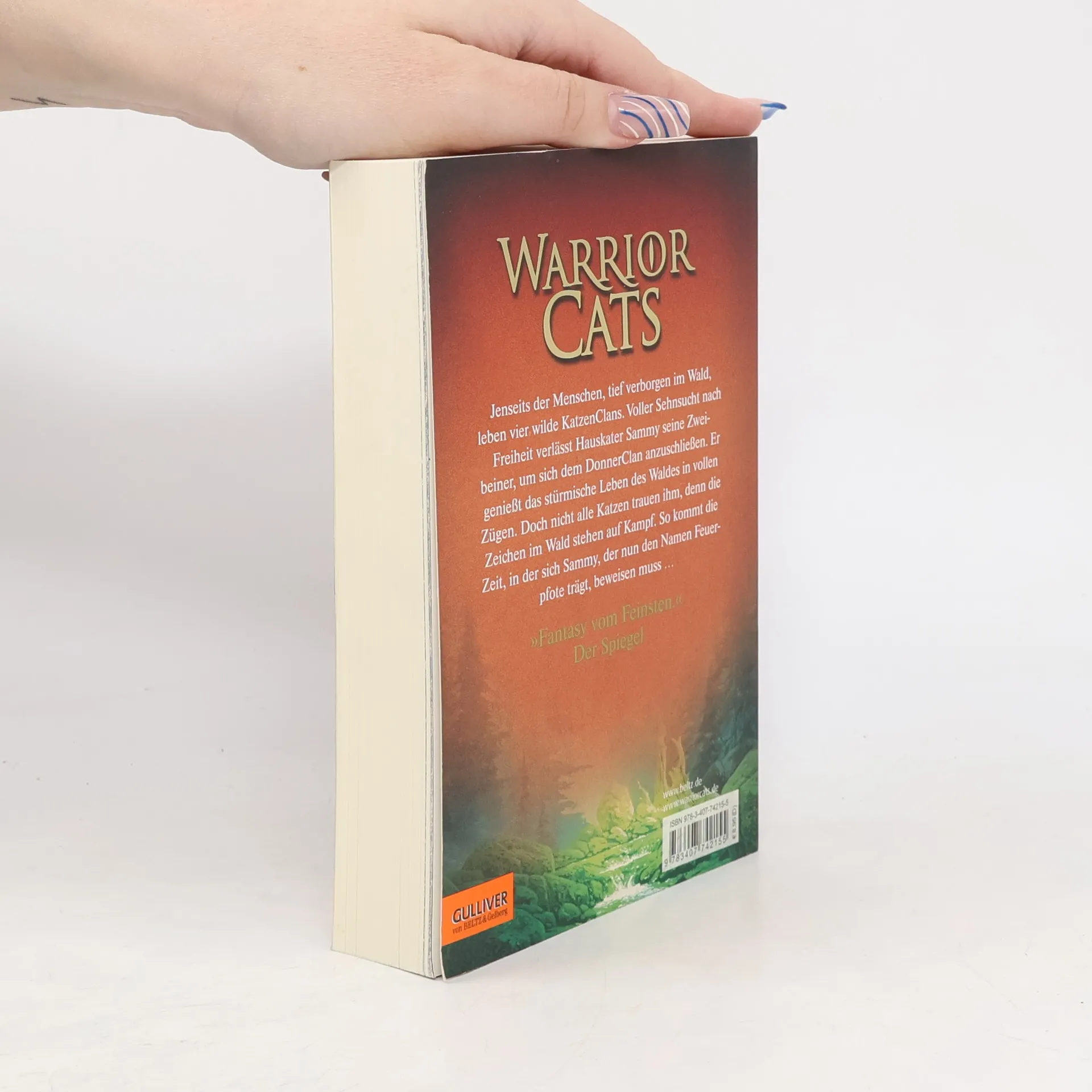 Ein Wald. Vier Clans. Und alle wollen überleben. Jenseits der Menschen, tief verborgen im Wald, leben die Katzen der Clans wild und ungezähmt. Feuerpfote, der seine Zweibeiner verließ, um sich dem DonnerClan anzuschließen, genießt das stürmische Leben des Waldes in vollen Zügen. Seite an Seite mit den wilden Katzen lernt er zu jagen, seine Instinkte zu gebrauchen, er lernt den Wald zu hören und seine Feinde zu riechen. Doch das Leben stellt ihn auch immer wieder auf die Probe, denn der Platz ist eng, das Futter knapp. Blaustern, die Anführerin des DonnerClans, hat Zweifel, ob es der Clan schaffen wird, bis zur Blattfrische zu überleben. Da erfährt Feuerpfote von der Prophezeiung: „Nur Feuer kann den Clan retten!“ Was hat diese Prophezeiung zu bedeuten?