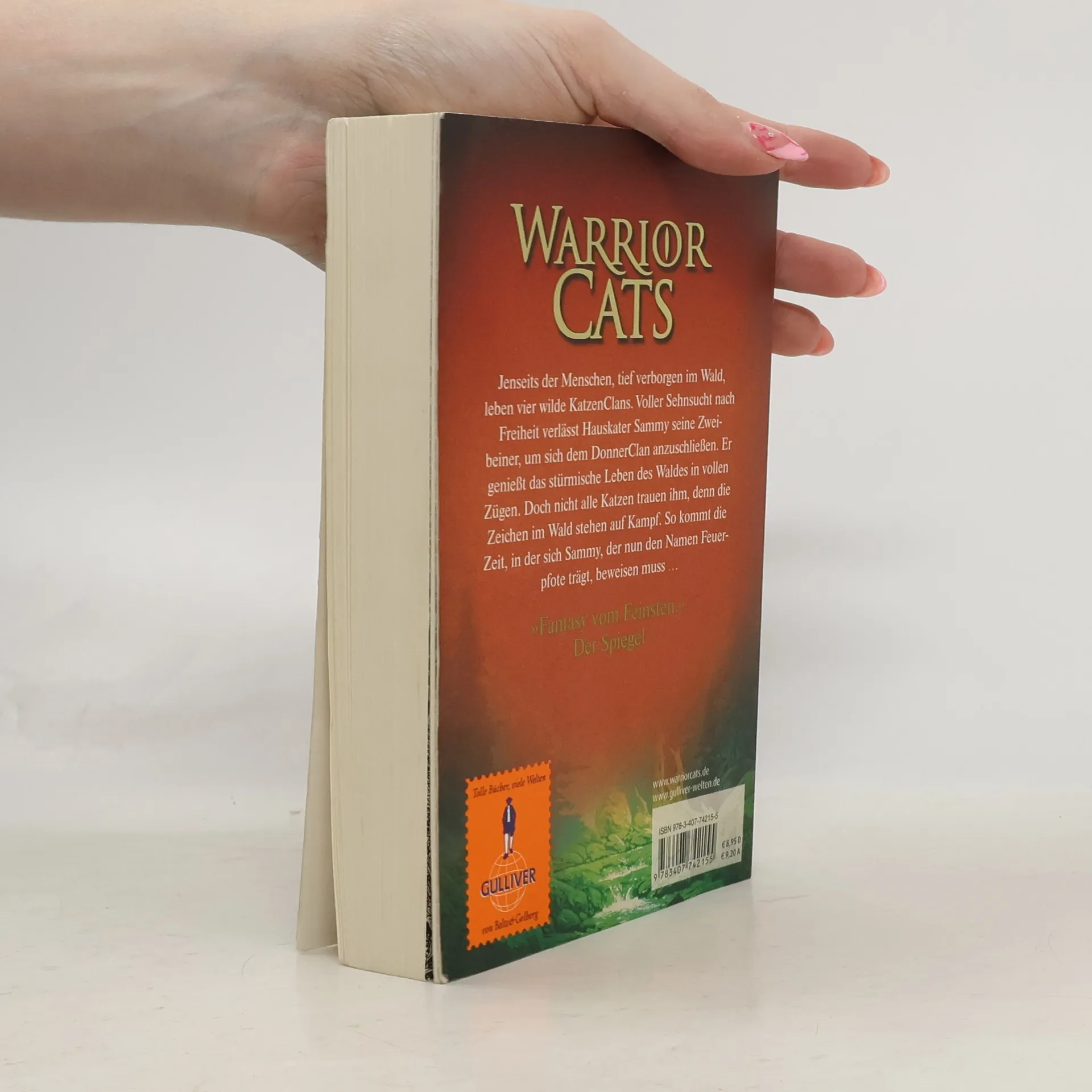 Ein Wald. Vier Clans. Und alle wollen überleben. Jenseits der Menschen, tief verborgen im Wald, leben die Katzen der Clans wild und ungezähmt. Feuerpfote, der seine Zweibeiner verließ, um sich dem DonnerClan anzuschließen, genießt das stürmische Leben des Waldes in vollen Zügen. Seite an Seite mit den wilden Katzen lernt er zu jagen, seine Instinkte zu gebrauchen, er lernt den Wald zu hören und seine Feinde zu riechen. Doch das Leben stellt ihn auch immer wieder auf die Probe, denn der Platz ist eng, das Futter knapp. Blaustern, die Anführerin des DonnerClans, hat Zweifel, ob es der Clan schaffen wird, bis zur Blattfrische zu überleben. Da erfährt Feuerpfote von der Prophezeiung: „Nur Feuer kann den Clan retten!“ Was hat diese Prophezeiung zu bedeuten?