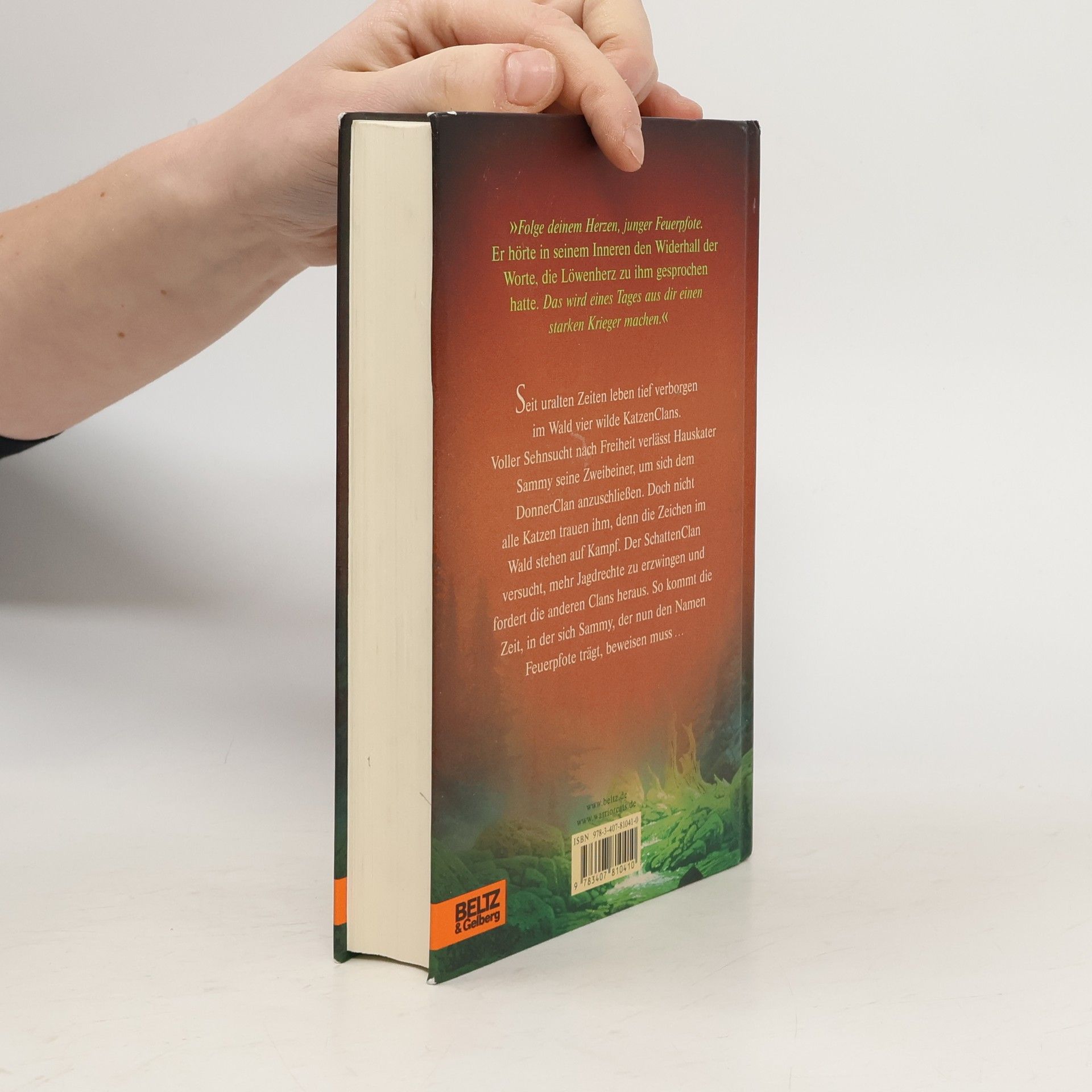 Ein Wald. Vier Clans. Und alle wollen überleben. Jenseits der Menschen, tief verborgen im Wald, leben die Katzen der Clans wild und ungezähmt. Feuerpfote, der seine Zweibeiner verließ, um sich dem DonnerClan anzuschließen, genießt das stürmische Leben des Waldes in vollen Zügen. Seite an Seite mit den wilden Katzen lernt er zu jagen, seine Instinkte zu gebrauchen, er lernt den Wald zu hören und seine Feinde zu riechen. Doch das Leben stellt ihn auch immer wieder auf die Probe, denn der Platz ist eng, das Futter knapp. Blaustern, die Königin des DonnerClans, hat Zweifel, ob es der Clan schaffen wird, bis zur Blattfrische zu überleben. Da erfährt Feuerpfote von der Prophezeiung: „Nur Feuer kann den Clan retten!“ Was hat diese Prophezeiung zu bedeuten?