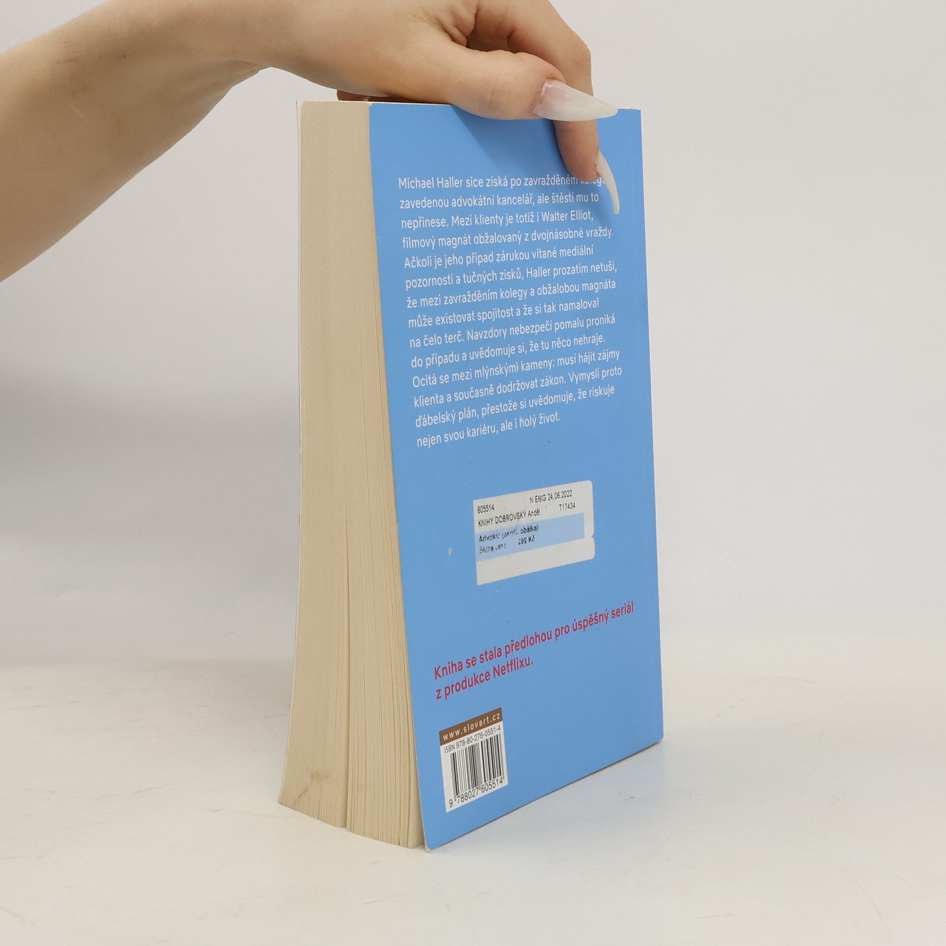 Michael Haller sice získá po zavražděném kolegovi zavedenou advokátní kancelář, ale štěstí mu to nepřinese. Mezi klienty je totiž i Walter Elliot, filmový magnát obžalovaný z dvojnásobné vraždy. Ačkoli je jeho případ zárukou vítané mediální pozornosti a tučných zisků, Haller prozatím netuší, že mezi zavražděním kolegy a obžalobou magnáta může existovat spojitost a že si tak namaloval na čelo terč. Navzdory nebezpečí pomalu proniká do případu a uvědomuje si, že tu něco nehraje. Ocitá se mezi mlýnskými kameny: musí hájit zájmy klienta a současně dodržovat zákon. Vymyslí proto ďábelský plán, přestože si uvědomuje, že riskuje nejen svou kariéru, ale i holý život. Kniha se stala předlohou pro úspěšný seriál z produkce Netflixu.