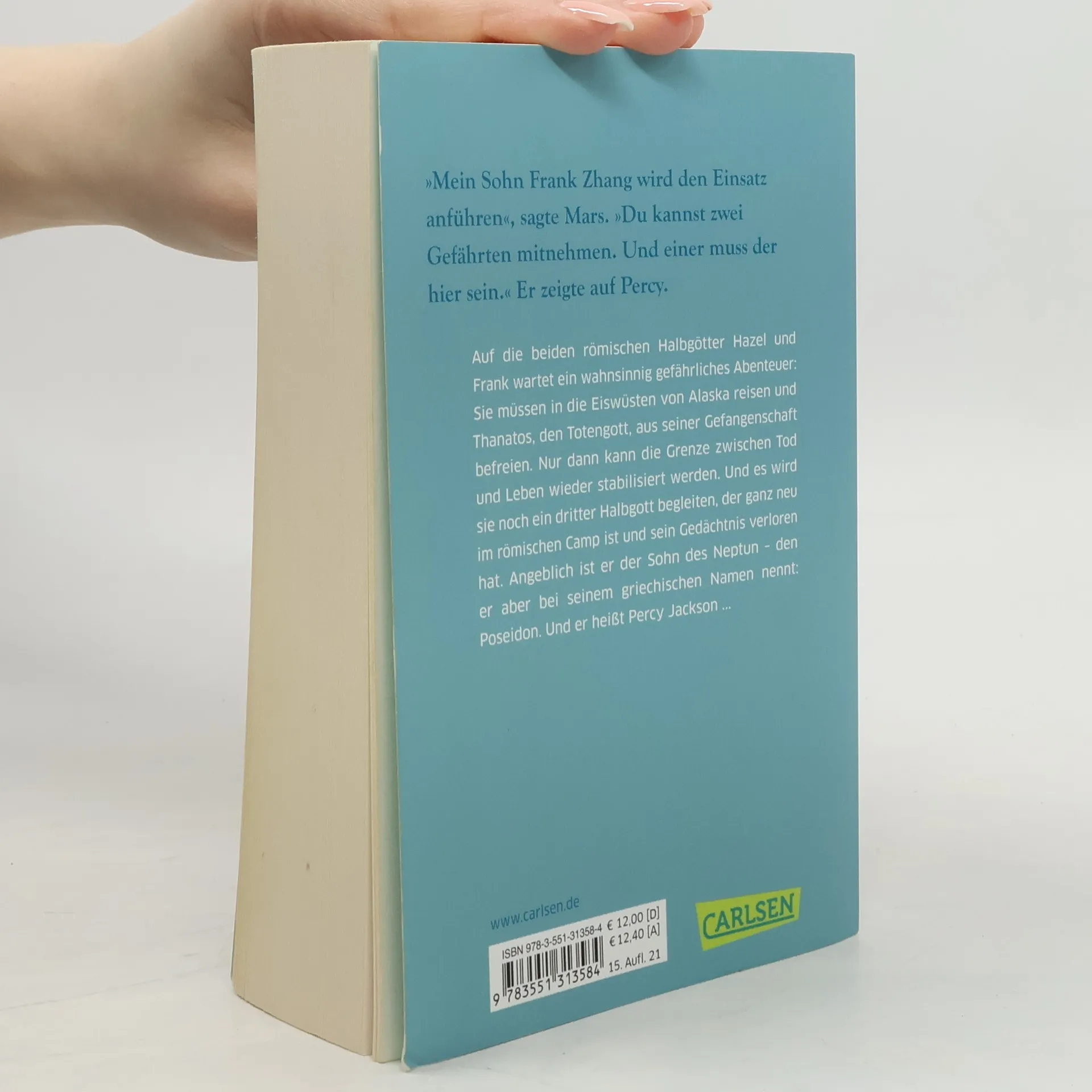 Unsterbliche Monster und ein bekannter Held kehren zurück. Die Balance zwischen Leben und Tod ist gestört: Egal, welchen Monstern die römischen Halbgötter Hazel und Frank gegenüberstehen und wie oft sie sie besiegen – die Bestien erheben sich immer wieder. Um die alte Norm wiederherzustellen, müssen sie in die Eiswüste von Alaska reisen, um Thanatos, den Totengott, aus seiner Gefangenschaft zu befreien. Begleitet werden sie von einem dritten Halbgott, der neu im römischen Camp ist und sein Gedächtnis verloren hat. Er behauptet, ein Sohn des Neptun zu sein, nennt sich jedoch bei seinem griechischen Namen, Poseidon. Sein Name ist Percy Jackson. Die Geschichte setzt die beliebte Jugendbuch-Bestsellerserie fort. Jason erwacht ohne Erinnerung auf einer Klassenfahrt, und die Ereignisse überschlagen sich. Als Sohn des Jupiter gehört er zu den sieben legendären Halbgöttern, die den Olymp gegen die Urgöttin Gaia und ihre Gefolgschaft verteidigen müssen. Um erfolgreich zu sein, müssen sich die römischen und griechischen Halbgötter zusammenschließen. „Helden des Olymp“ ist eine fünfteilige Fantasy-Reihe, die die jugendlichen Halbgötter Jason, Piper, Leo, Percy, Annabeth, Hazel und Frank in einem spannenden Mix aus Action, Witz und Mythologie präsentiert. ***Griechische Götter in der Gegenwart: actionreich, wild und urkomisch – für Leser*innen ab 12 Jahren und alle Fans der griechisch-römischen Mythologie.***
