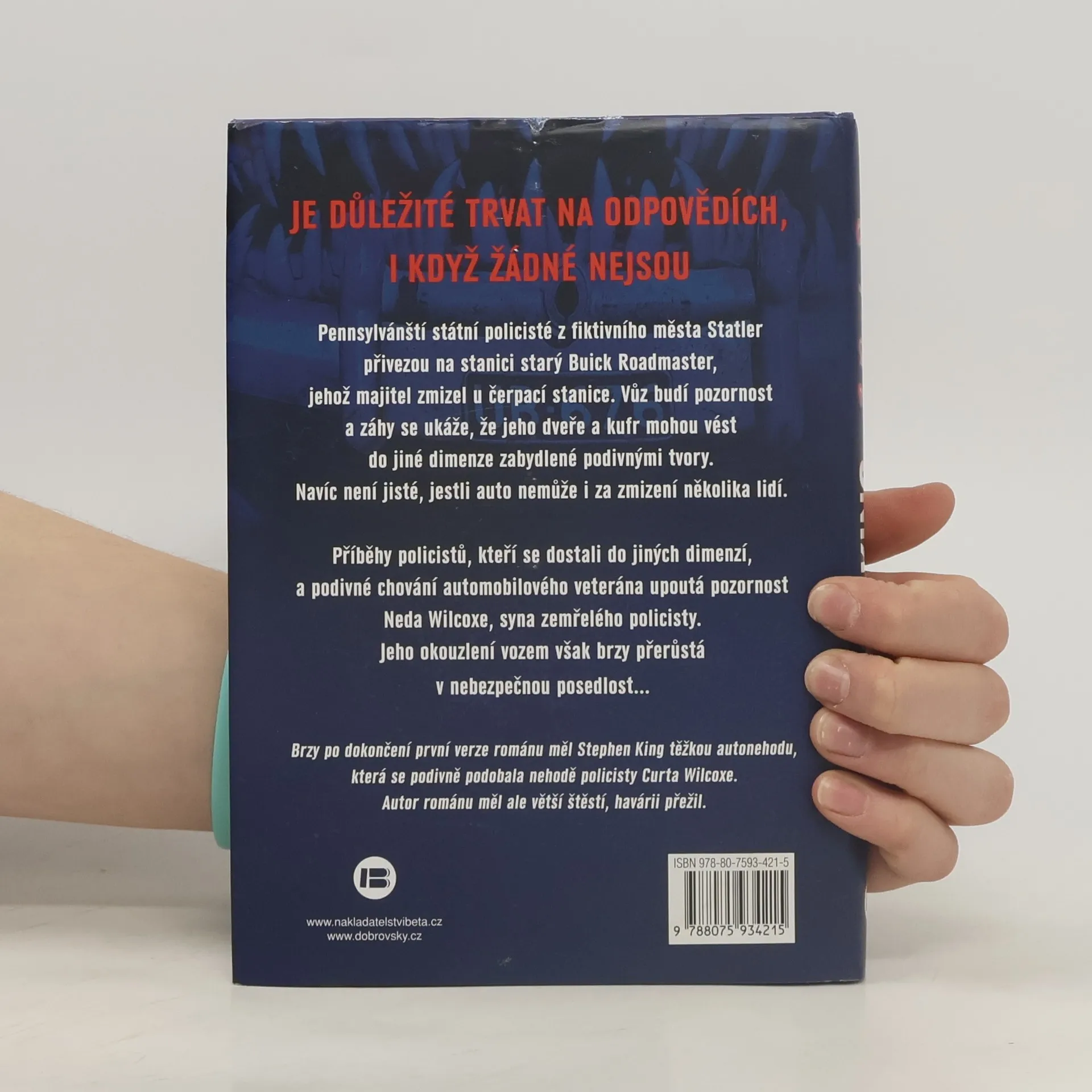 Je důležité trvat na odpovědích, i když žádné nejsou Pennsylvánští státní policisté z fiktivního města Statler přivezou na stanici starý Buick Roadmaster, jehož majitel zmizel u čerpací stanice. Vůz budí pozornost a záhy se ukáže, že jeho dveře a kufr mohou vést do jiné dimenze zabydlené podivnými tvory. Navíc není jisté, jestli auto nemůže i za zmizení několika lidí. Příběhy policistů, kteří se dostali do jiných dimenzí, a podivné chování automobilového veterána upoutá pozornost Neda Wilcoxe, syna zemřelého policisty. Jeho okouzlení vozem však brzy přerůstá v nebezpečnou posedlost... Brzy po dokončení první verze románu měl Stephen King těžkou autonehodu, která se podivně podobala nehodě policisty Curta Wilcoxe. Autor románu měl ale větší štěstí, havárii přežil.