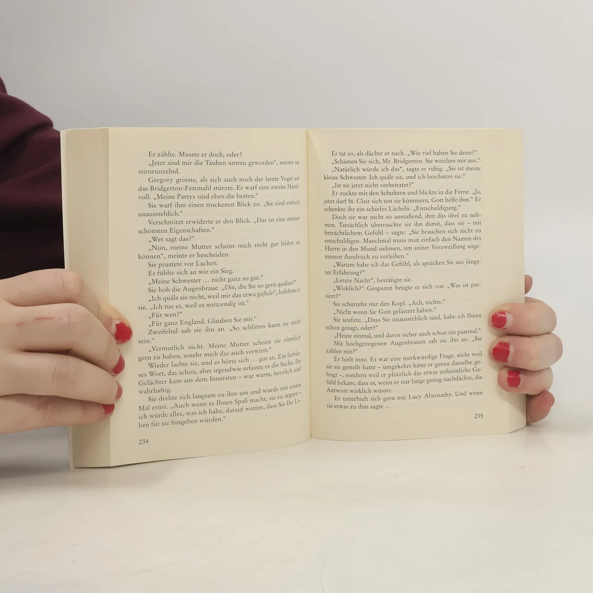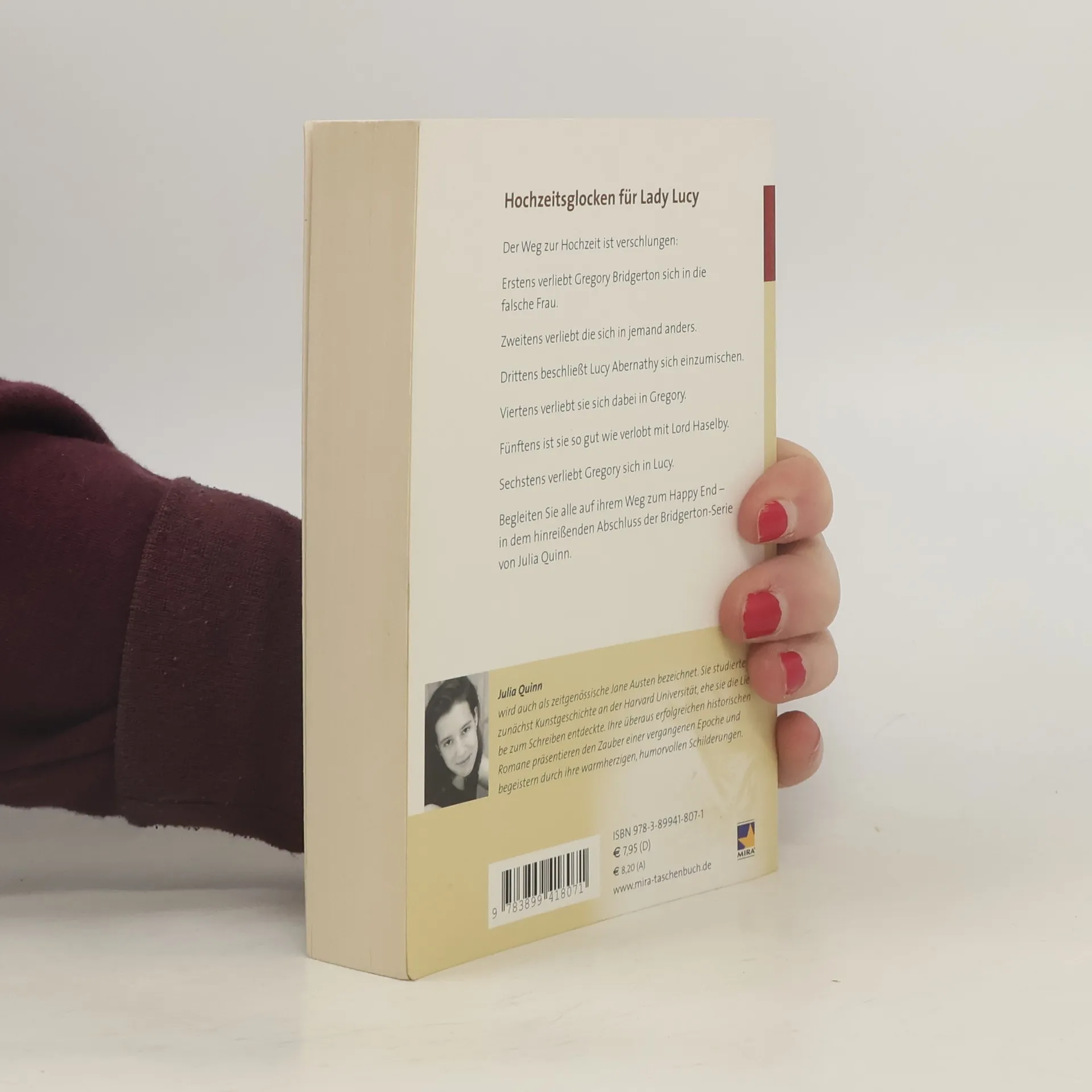 Der Weg zur Hochzeit ist verschlungen: Erstens verliebt Gregory Bridgerton sich in die falsche Frau. Zweitens verliebt die sich in jemand anders. Drittens beschließt Lucy Abernathy sich einzumischen. Viertens verliebt sie sich dabei in Gregory. Fünftens ist sie so gut wie verlobt mit Lord Haselby. Sechstens verliebt Gregory sich in Lucy. Begleiten Sie alle auf ihrem Weg zum Happy End – in dem hinreißenden Abschluss der Bridgerton-Serie von Julia Quinn.