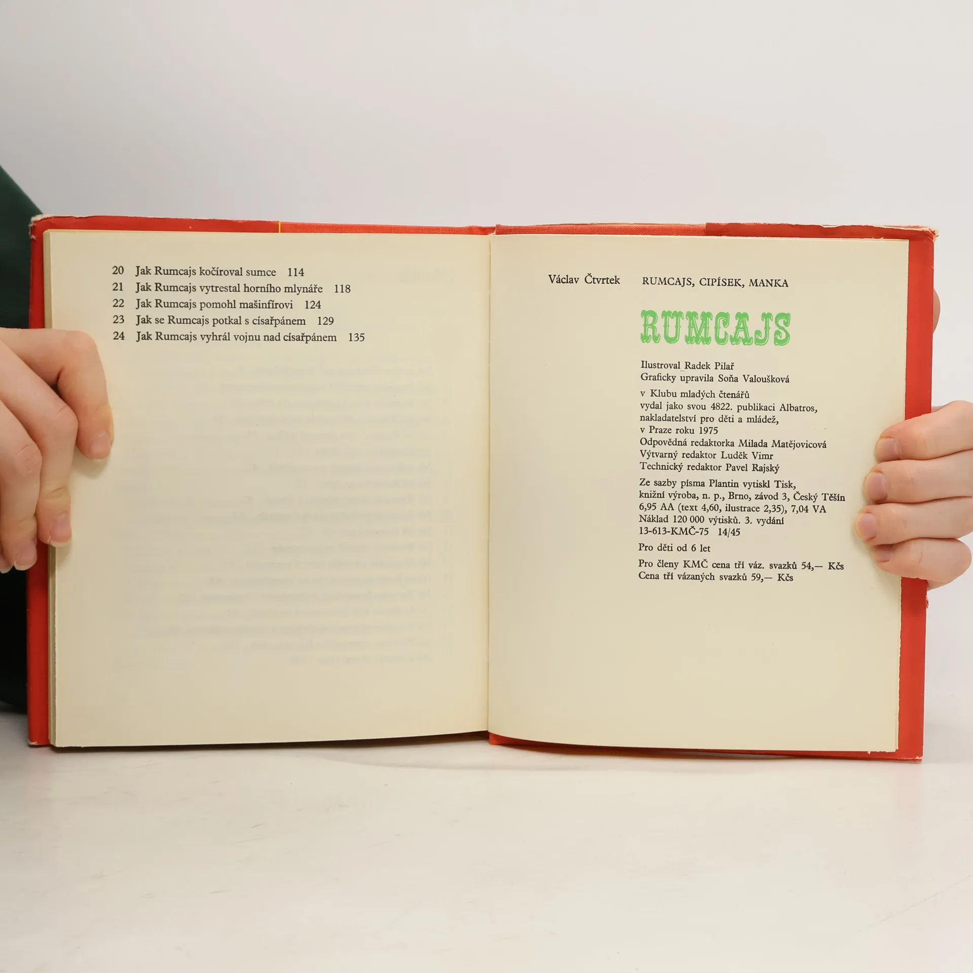 Protože Rumcajs je sice loupežník, ale dobrý a laskavý a vždy trestá jen nespravedlnost, stal se jednou z nejoblíbenějších postaviček naší novodobé pohádkové tvorby, jistě i díky podobě, kterou Čtvrtkovým figurkám vtiskl ilustrátor Radek Pilař. První díl souborného vydání pohádek oševci, který se dal na loupežničinu, když mu pro urážku starostovy nohy nadosmrti zavřeli živnost.