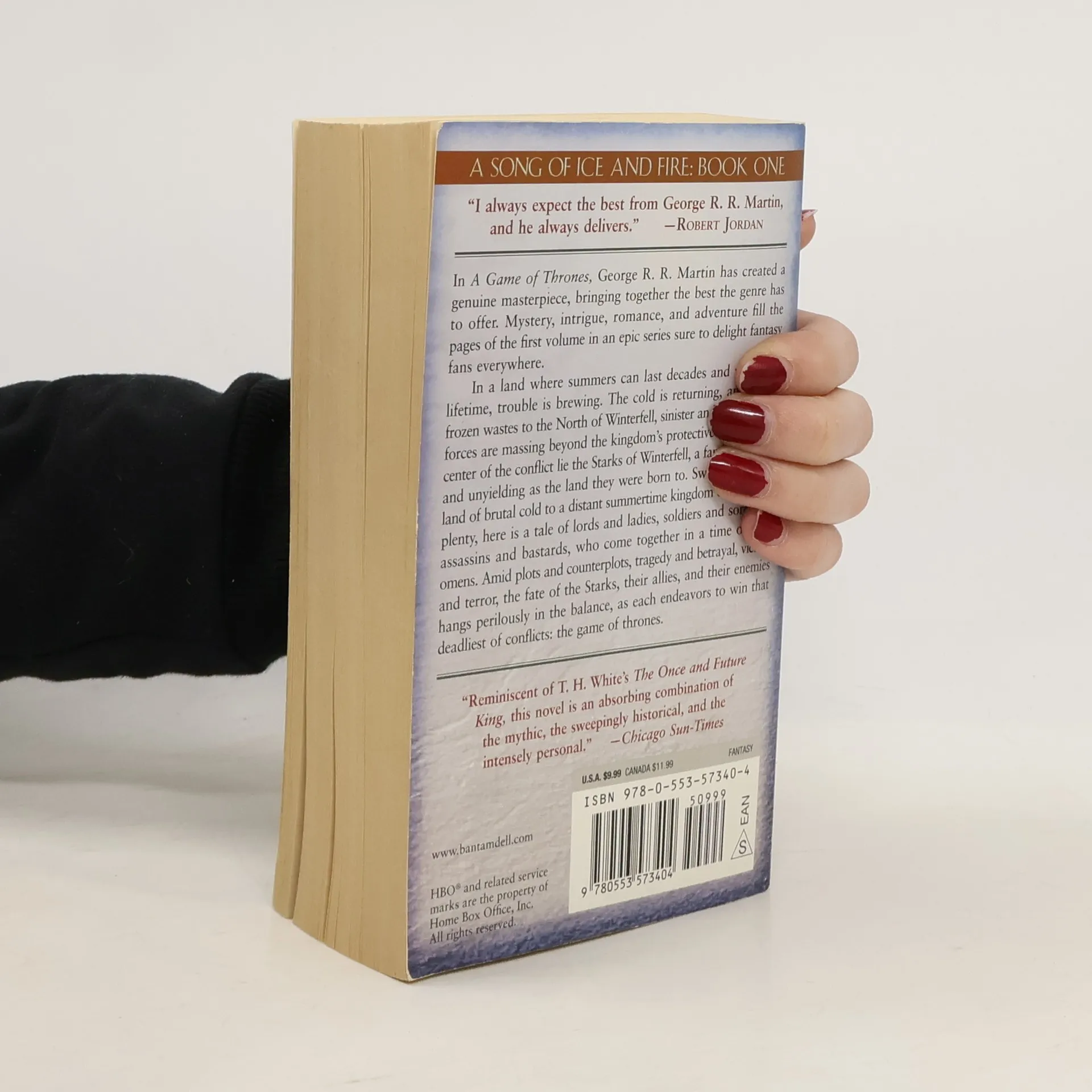 NOW THE ACCLAIMED HBO SERIES GAME OF THRONES—THE MASTERPIECE THAT BECAME A CULTURAL PHENOMENON Here is the first book in the landmark series that has redefined imaginative fiction and become a modern masterpiece. A GAME OF THRONES In a land where summers can last decades and winters a lifetime, trouble is brewing. The cold is returning, and in the frozen wastes to the North of Winterfell, sinister and supernatural forces are massing beyond the kingdom’s protective Wall. At the center of the conflict lie the Starks of Winterfell, a family as harsh and unyielding as the land they were born to. Sweeping from a land of brutal cold to a distant summertime kingdom of epicurean plenty, here is a tale of lords and ladies, soldiers and sorcerers, assassins and bastards, who come together in a time of grim omens. Amid plots and counterplots, tragedy and betrayal, victory and terror, the fate of the Starks, their allies, and their enemies hangs perilously in the balance, as each endeavors to win that deadliest of conflicts: the game of thrones. A GAME OF THRONES • A CLASH OF KINGS • A STORM OF SWORDS • A FEAST FOR CROWS • A DANCE WITH DRAGONS