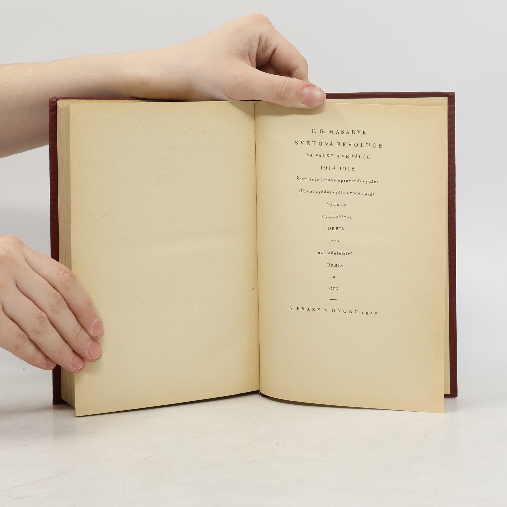 Světová revoluce je poslední velkým spisem T. G. Masaryka a v jistém smyslu bilancí jeho celoživotních ideově politických východisek, postojů a snah.