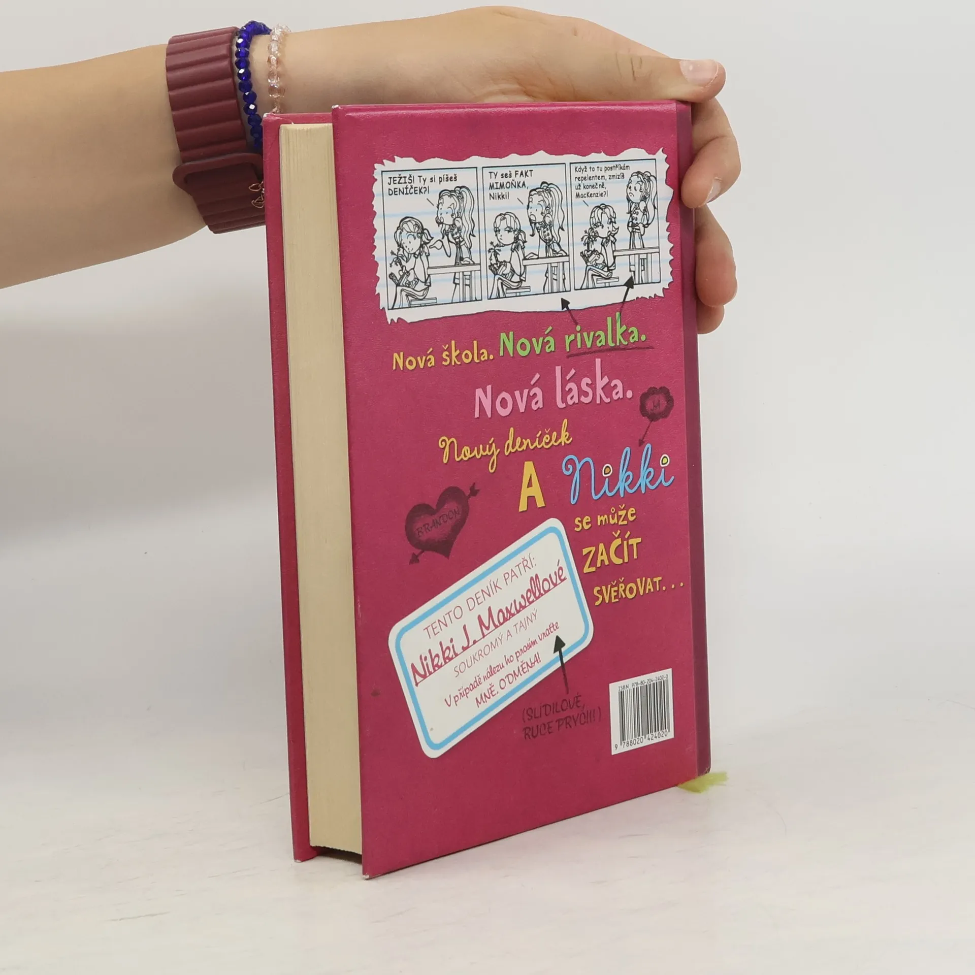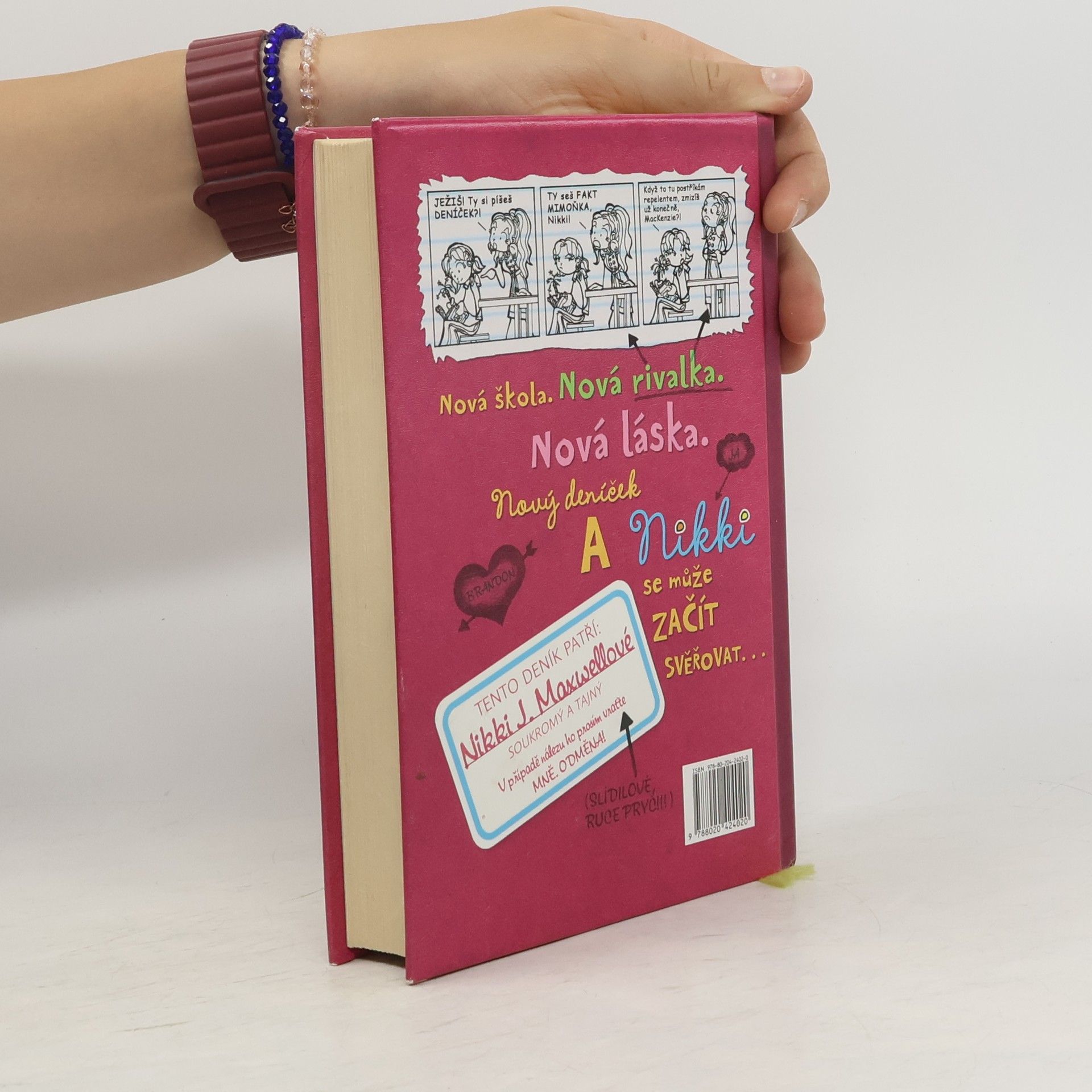 Nestačí, že Nikki J. Maxwellová má otce, který se živí hubením brouků. Ještě se kvůli tomu dostane do prestižní soukromé školy, kam moc nezapadá. Z pohledu její zapřisáhlé nepřítelkyně MacKenzie, dokonalé dívky, která má vše, co je třeba, je Nikki prostě „mimoňka“. A toto je její deník. Zachycující příhody každodenního života, například jak si chtěla z naslouchátka vyrobit luxusní hands-free, jak se snažila sbalit nejhezčího kluka a co zažívala se svými novými kamarádkami, Chloe a Zoey. Doplněno výstižnými ilustracemi. První vydání.