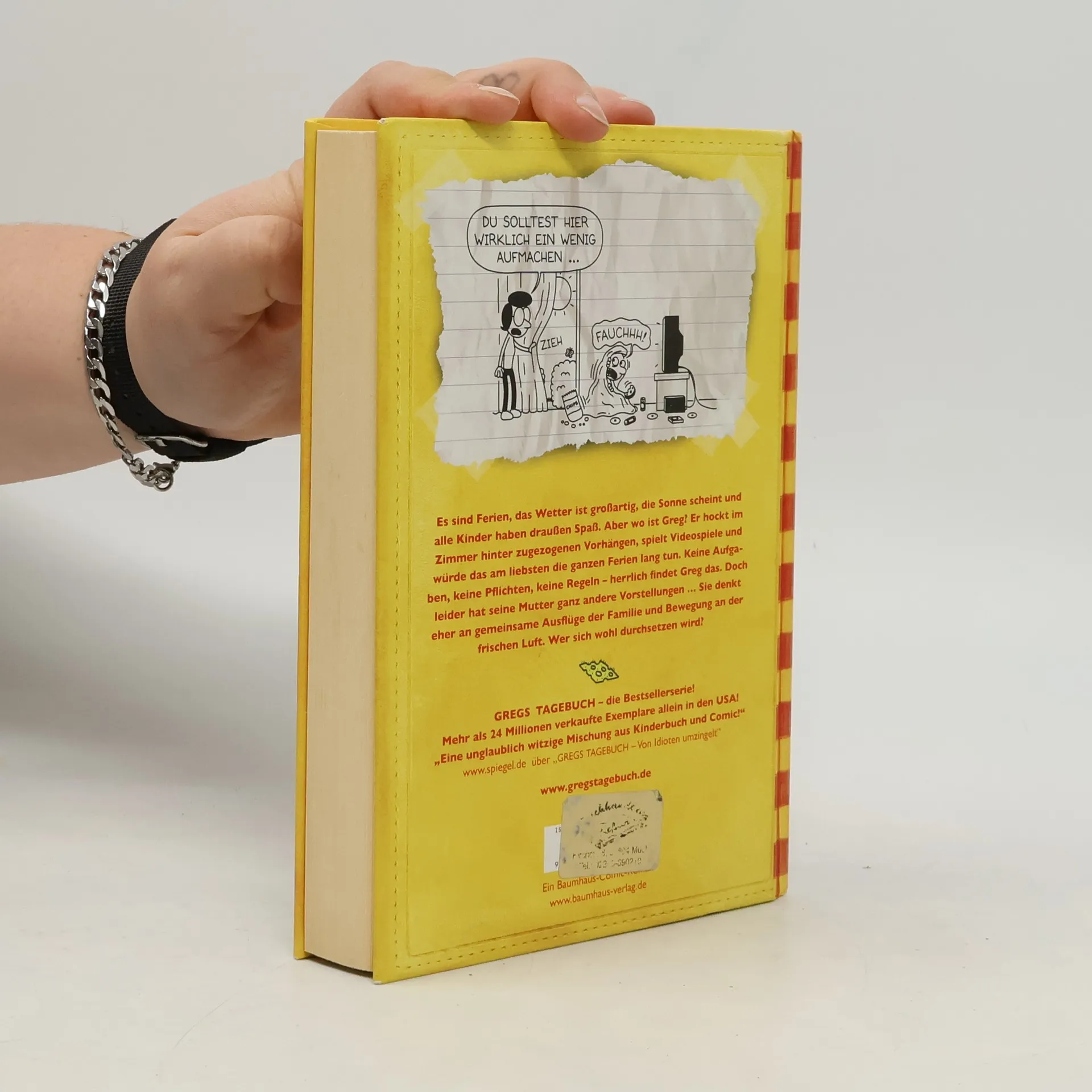 "Es sind Ferien, das Wetter ist großartig, die Sonne scheint und alle Kinder haben draußen Spaß. Aber wo ist Greg? Er hockt im Zimmer hinter zugezogenen Vorhängen, spielt Videospiele und würde das am liebsten die ganzen Ferien lang tun. Keine Aufgaben, keine Pflichten, keine Regeln - herrlich findet Greg das. Doch leider hat seine Mutter ganz andere Vorstellungen ... Sie denkt eher an gemeinsame Ausflüge mit der Familie und Bewegung an der frischen Luft. Wer sich wohl durchsetzen wird?" (Verlagsangabe)