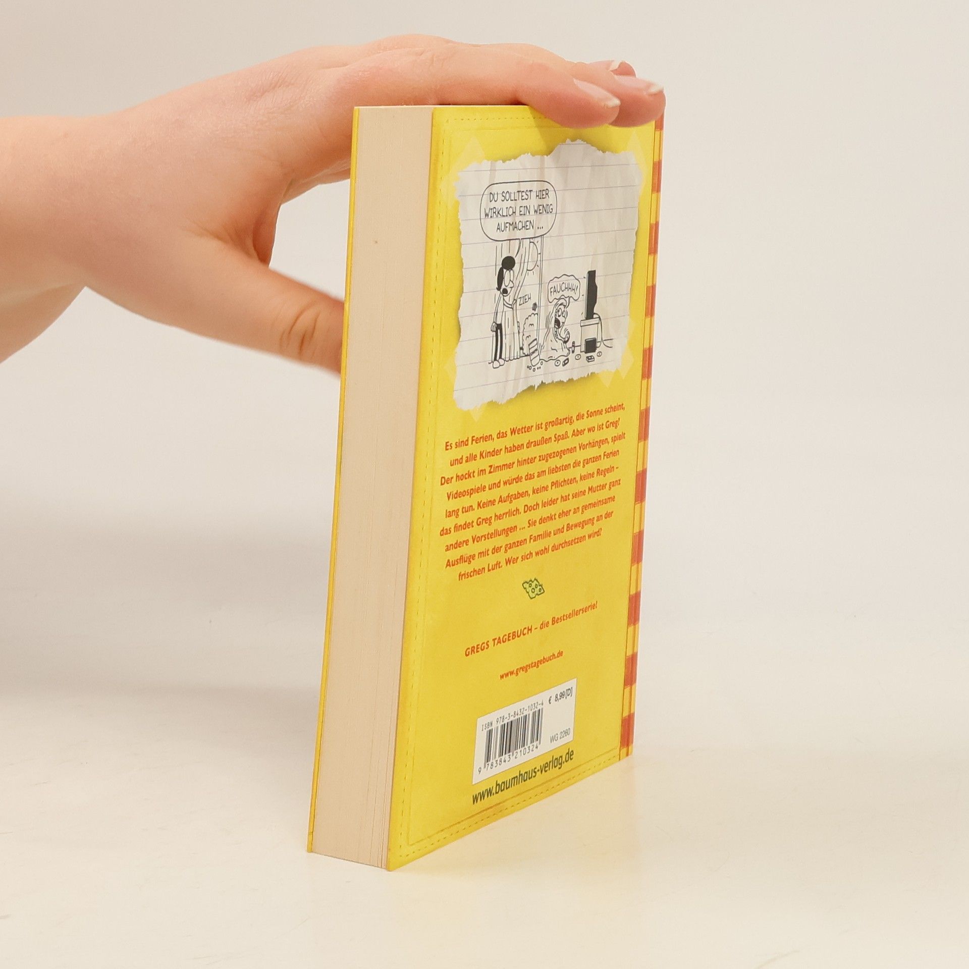 Es sind Ferien, das Wetter ist großartig, die Sonne scheint und alle Kinder haben draußen Spaß. Aber wo ist Greg? Er hockt im Zimmer hinter zugezogenen Vorhängen, spielt Videospiele und würde das am liebsten die ganzen Ferien lang tun. Keine Aufgaben, keine Pflichten, keine Regeln - herrlich findet Greg das. Doch leider hat seine Mutter ganz andere Vorstellungen ... Sie denkt eher an gemeinsame Ausflüge der Familie an der frischen Luft. Wer sich wohl durchsetzen wird?