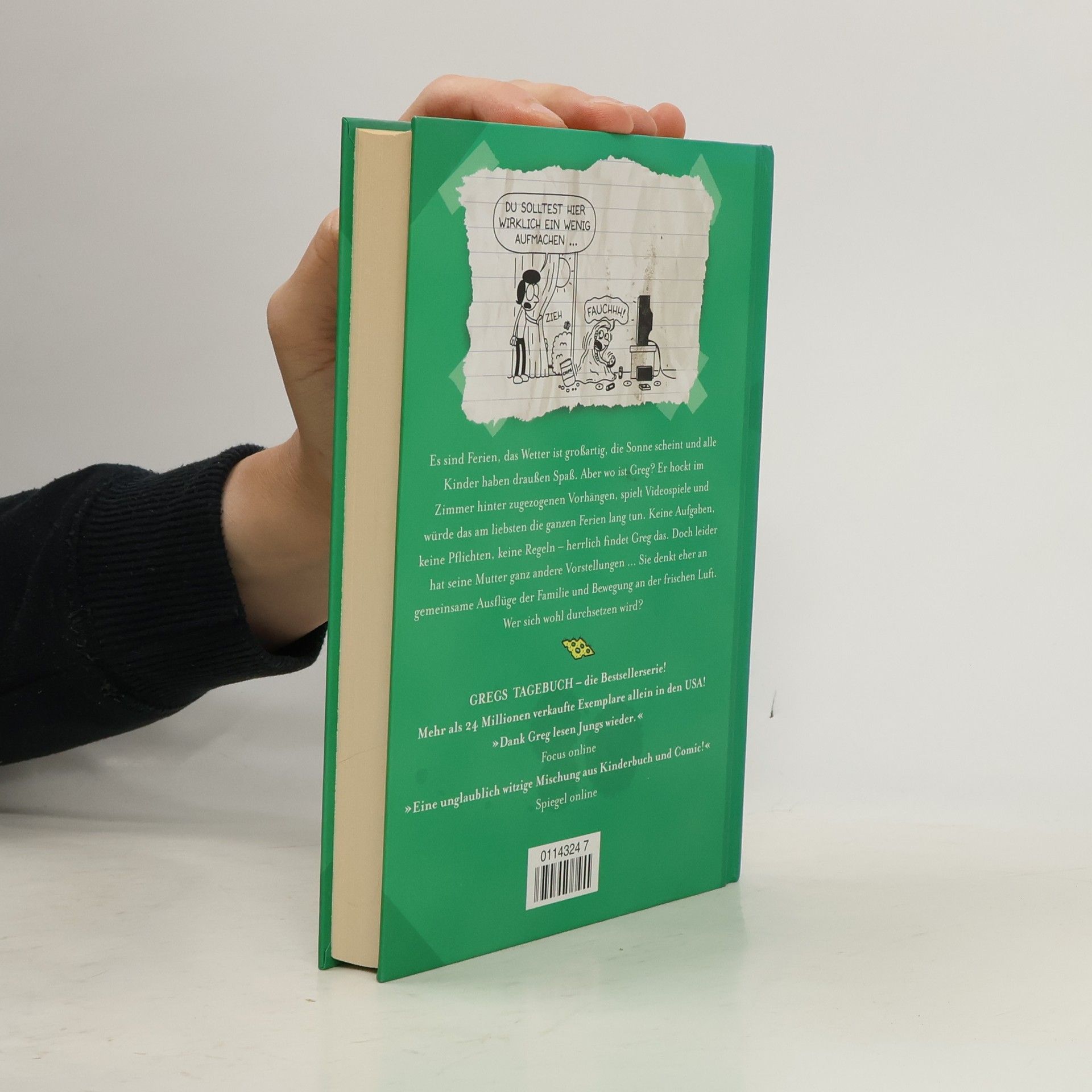 "Es sind Ferien, das Wetter ist großartig, die Sonne scheint und alle Kinder haben draußen Spaß. Aber wo ist Greg? Er hockt im Zimmer hinter zugezogenen Vorhängen, spielt Videospiele und würde das am liebsten die ganzen Ferien lang tun. Keine Aufgaben, keine Pflichten, keine Regeln - herrlich findet Greg das. Doch leider hat seine Mutter ganz andere Vorstellungen ... Sie denkt eher an gemeinsame Ausflüge mit der Familie und Bewegung an der frischen Luft. Wer sich wohl durchsetzen wird?" (Verlagsangabe)