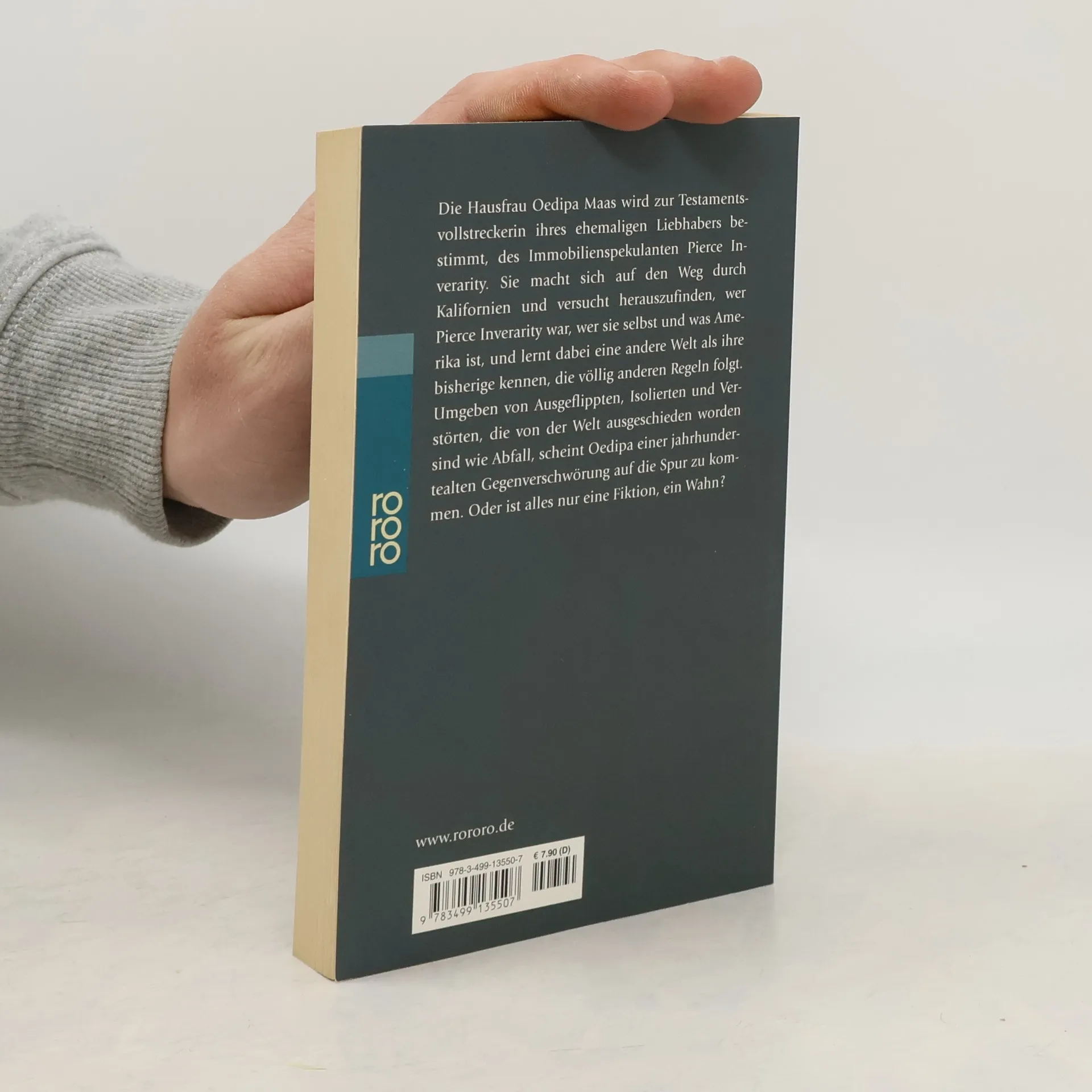 Die Hausfrau Oedipa Maas wird zur Testamentsvollstreckerin ihres ehemaligen Liebhabers bestimmt, des Immobilienspekulanten Pierce Inverarity. Sie macht sich auf den Weg durch Kalifornien und versucht herauszufinden, wer Pierce Inverarity war, wer sie selbst und was Amerika ist, und lernt dabei eine andere Welt als ihre bisherige kennen, die völlig anderen Regeln folgt. Umgeben von Ausgeflippten, Isolierten und Verstörten, die von der Welt ausgeschieden worden sind wie Abfall, scheint Oedipa einer jahrhundertealten Gegenverschwörung auf die Spur zu kommen. Oder ist alles nur eine Fiktion, ein Wahn ?