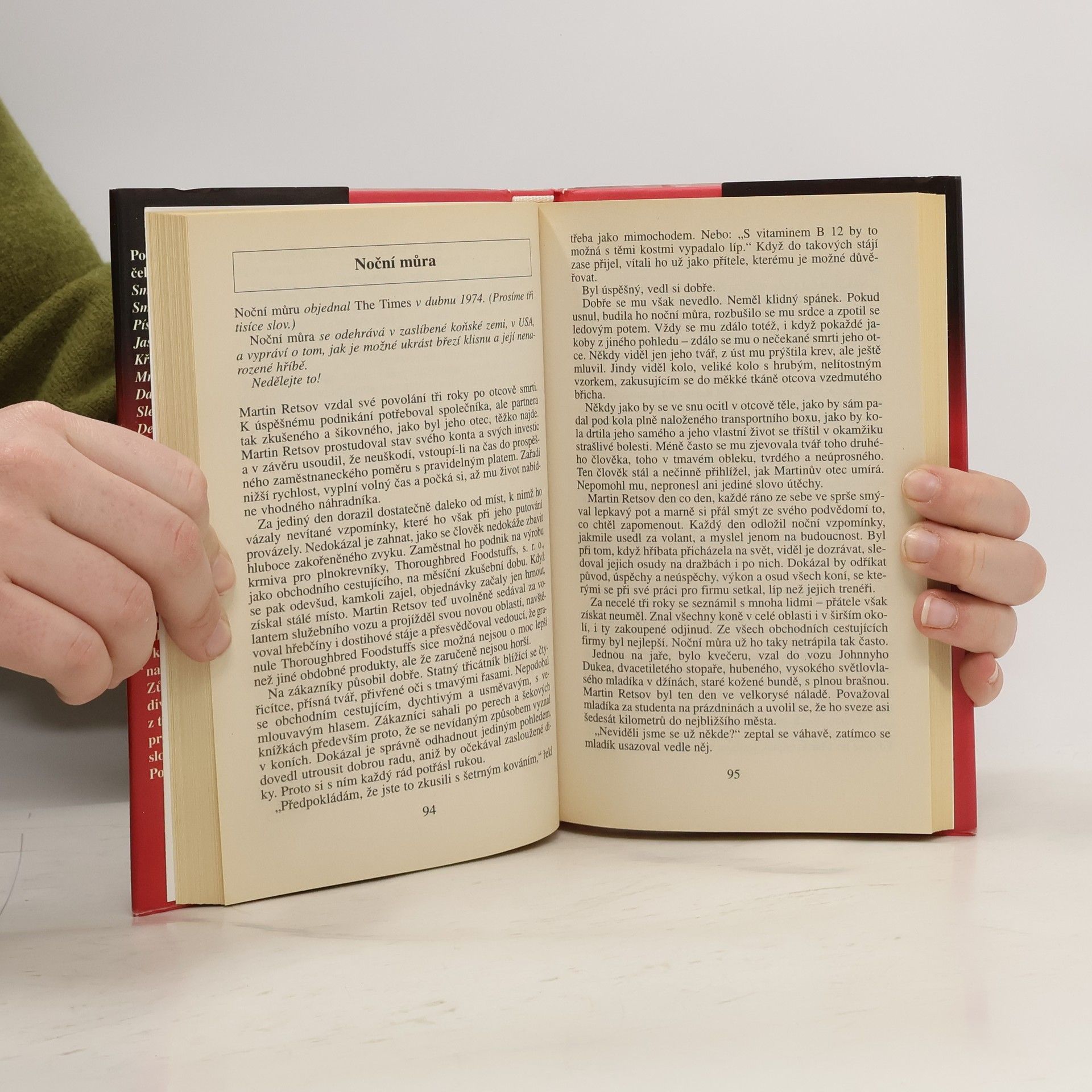 Mistr detektivního románu z dostihového prostředí neztrácí nic ze svého mistrovství ani v sedle povídkovém. Na rozdíl od románů, ve kterých se Francis se svými hrdiny, o jejichž cti nelze pochybovat, ztotožňuje, v povídkách dokazuje, že umí udělat literárního hrdinu i z padoucha, pohybujícího se na opačné straně zákona. 1. vydání.
