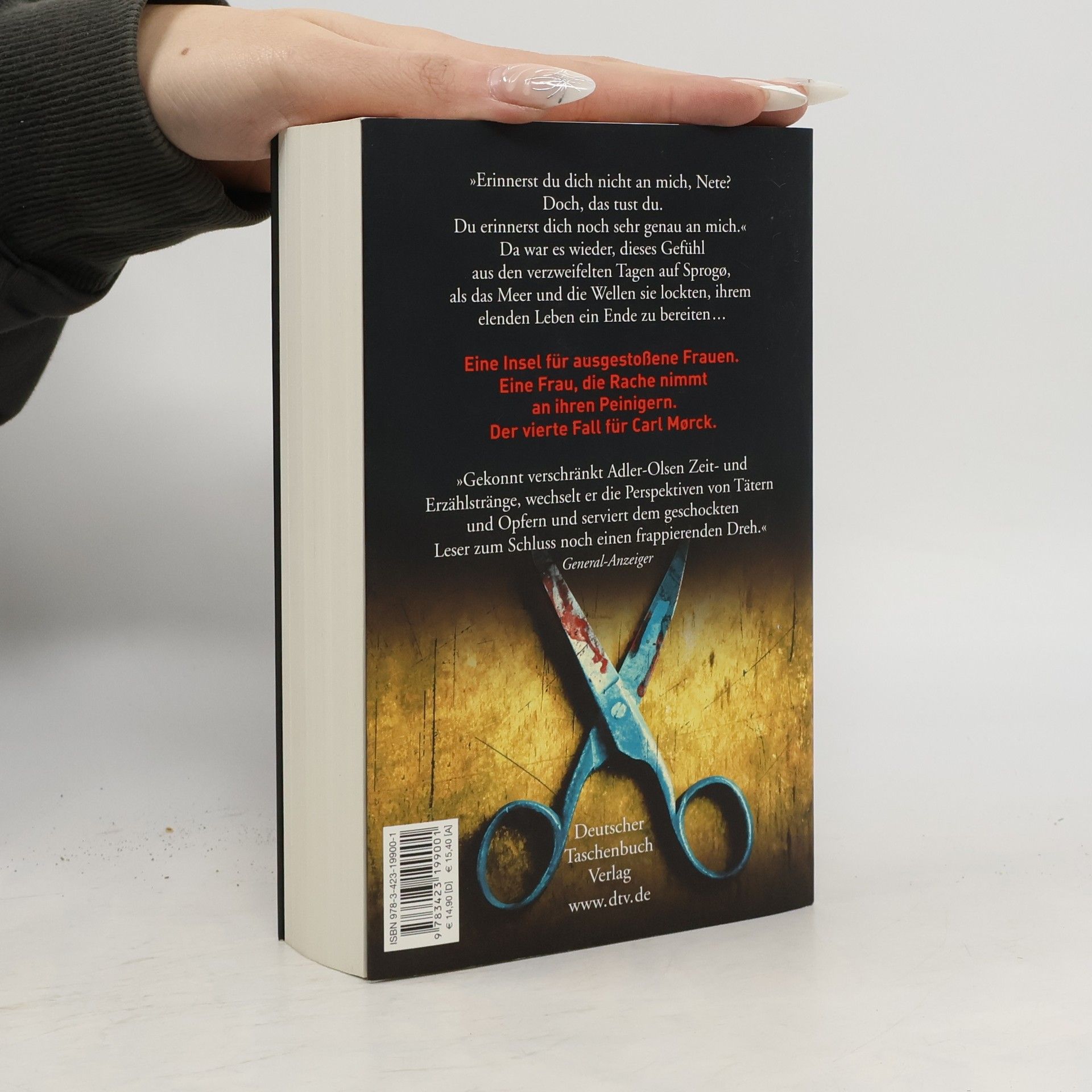 Der vierte Fall für das Sonderdezernat Q  Eine Reihe vermisster Personen aus dem Jahr 1987, die durch eine Person und deren entsetzliches Schicksal verbunden sind: Nete Hermansen. Eine junge Frau ohne jede Chance auf ein selbstbestimmtes Leben, von Menschen grausam misshandelt, wird zwangssterilisiert durch einen fanatischen Arzt und verbannt nach Sprogø, der Insel für ausgestoßene Frauen. Sie nimmt grausam Rache ...