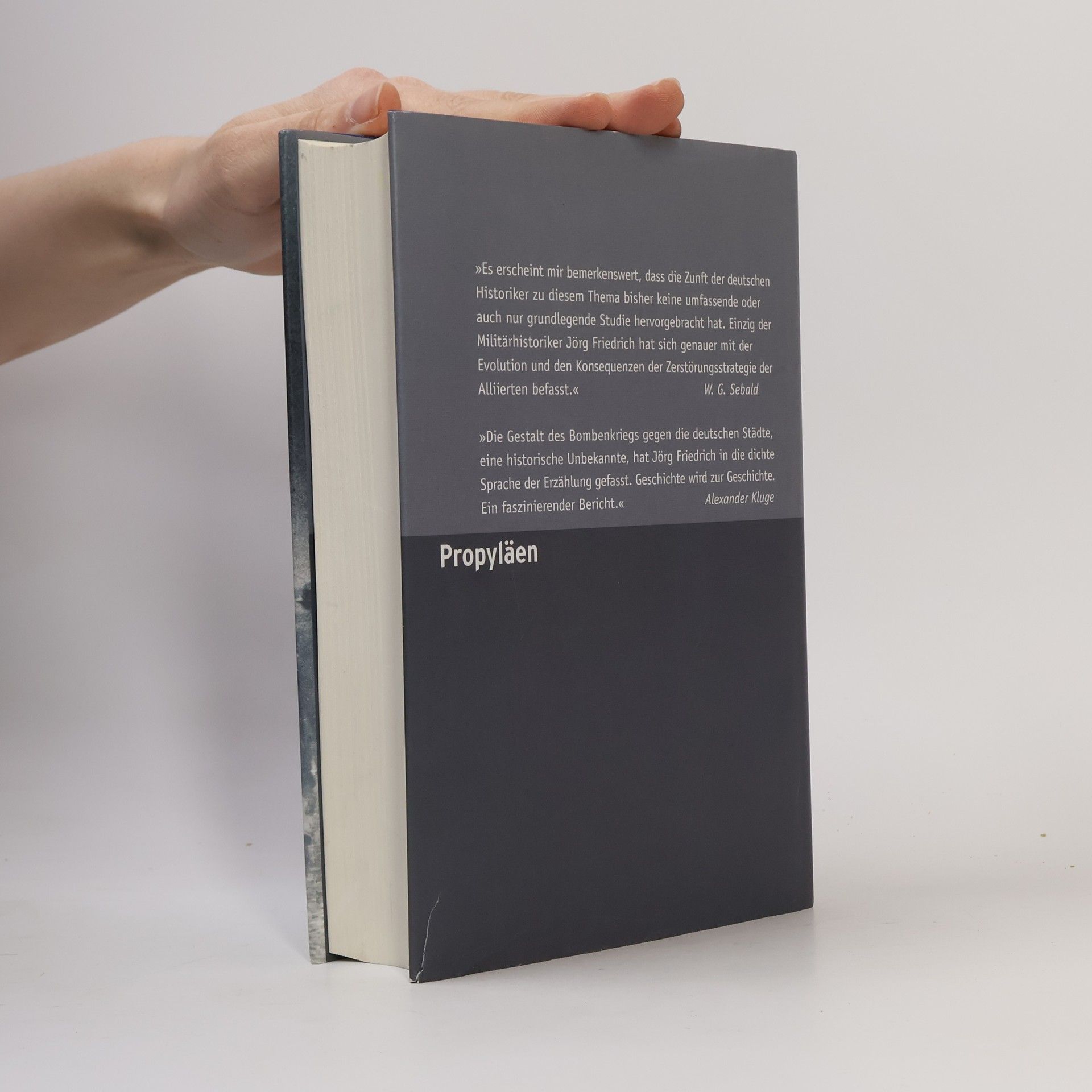 Fünf Jahre lang lagen Deutschlands Städte im Zweiten Weltkrieg unter Dauerbombardement. Mehr als 600 000 Zivilopfer waren zu beklagen, die historisch gewachsene Städtelandschaft versank unwiederbringlich. Der Historiker Jörg Friedrich legt die erste umfassende Darstellung dieser Katastrophe vor, die trotz ihrer beispiellosen Dimension im nationalen Gedächtnis der Deutschen kaum Niederschlag gefunden hat.