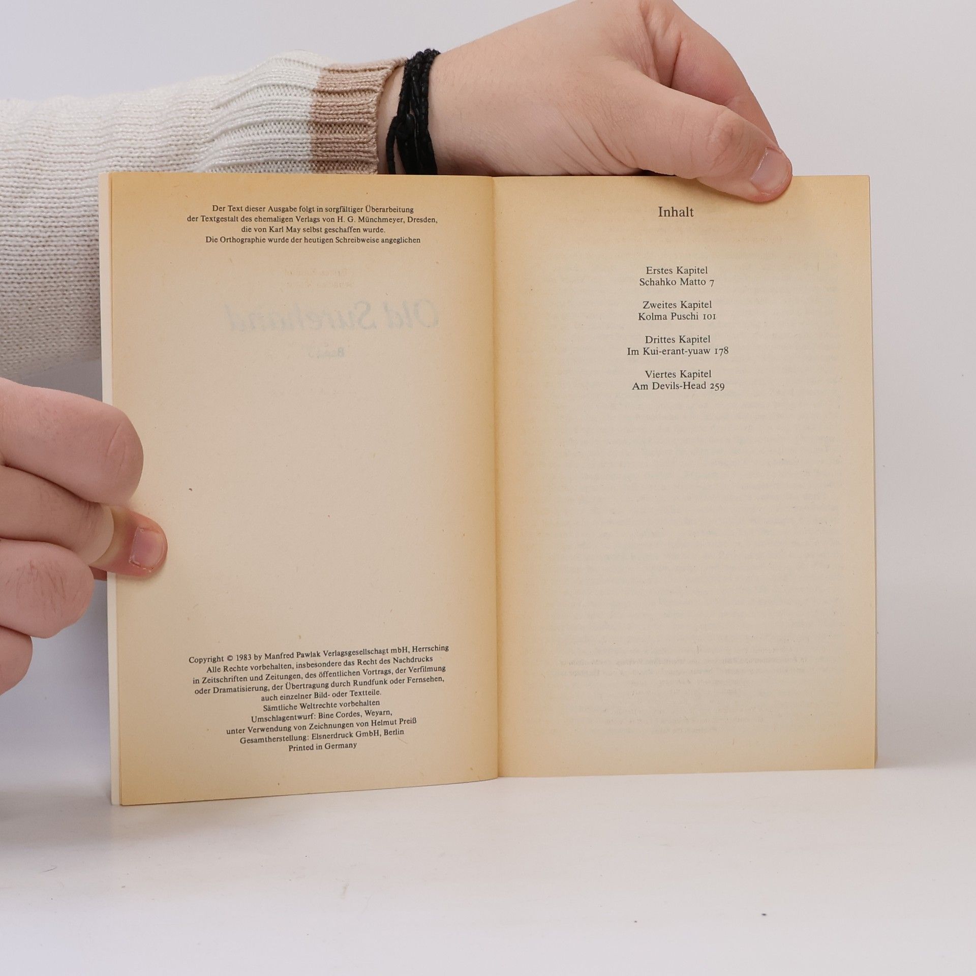 Karl May: Old Surehand III Edition Holzinger. Taschenbuch Berliner Ausgabe, 2013 Vollstandiger, durchgesehener Neusatz mit einer Biographie des Autors bearbeitet und eingerichtet von Michael Holzinger Entstanden 1896. Erste Buchausgabe: Freiburg i.Br. (Friedrich Ernst Fehsenfeld) 1896 (= Karl May's gesammelte Reisererzahlungen. Band 19). Textgrundlage ist die Ausgabe: Old Surehand. 3. Band. Illustrierte Reiseerzahlungen von Karl May. 1.-7. Tsd. - Freiburg i.Br.: Friedrich Ernst Fehsenfeld 1909. 2 Bl., 566 S., 1 Bl. - = Karl Mays Illustrierte Reiseerzahlungen. Band XIII. Herausgeber der Reihe: Michael Holzinger Reihengestaltung: Viktor Harvion Umschlaggestaltung unter Verwendung des Bildes: Karl May (Fotografie von Erwin Raupp, 1907) Gesetzt aus Minion Pro, 10 pt