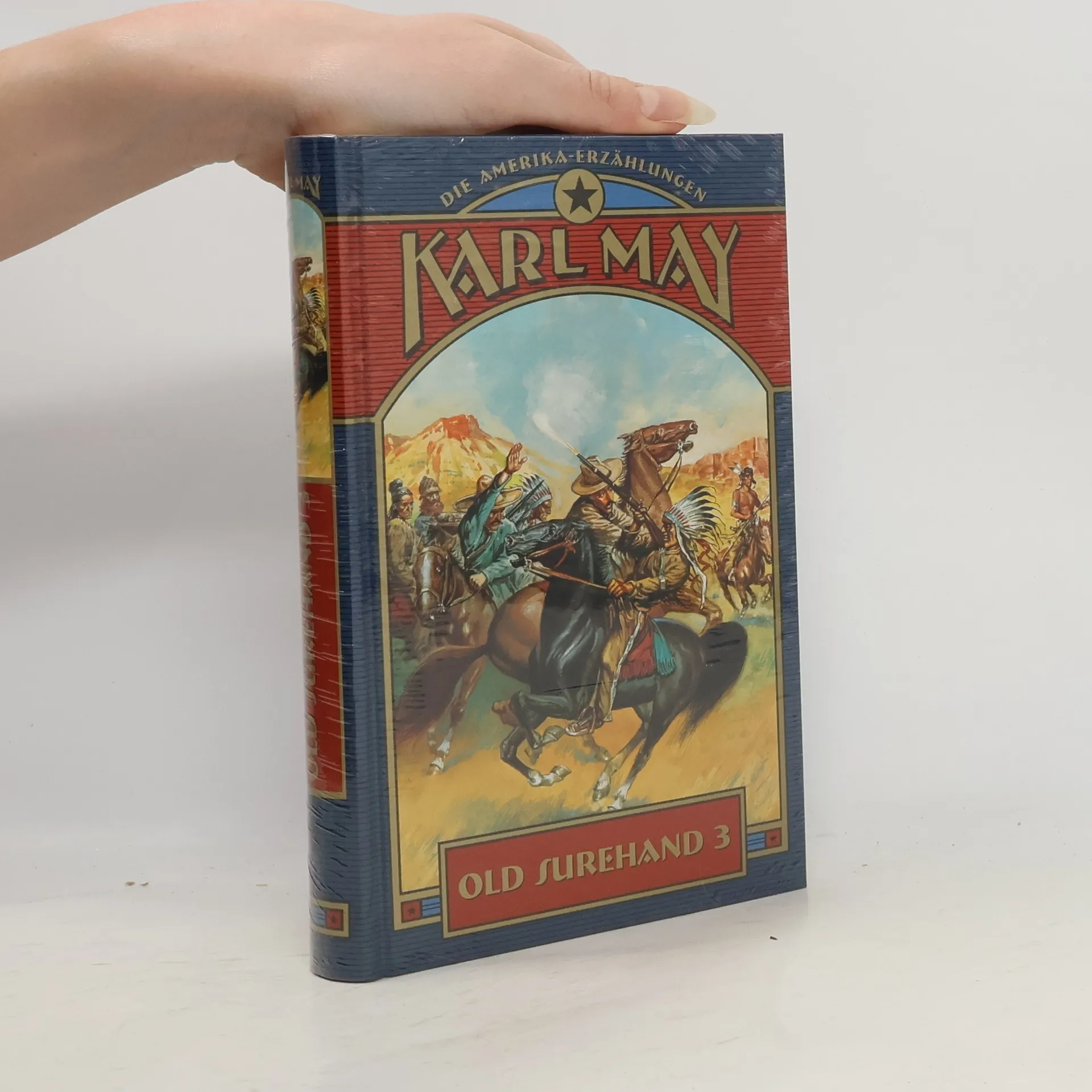 Karl May: Old Surehand III Edition Holzinger. Taschenbuch Berliner Ausgabe, 2013 Vollstandiger, durchgesehener Neusatz mit einer Biographie des Autors bearbeitet und eingerichtet von Michael Holzinger Entstanden 1896. Erste Buchausgabe: Freiburg i.Br. (Friedrich Ernst Fehsenfeld) 1896 (= Karl May's gesammelte Reisererzahlungen. Band 19). Textgrundlage ist die Ausgabe: Old Surehand. 3. Band. Illustrierte Reiseerzahlungen von Karl May. 1.-7. Tsd. - Freiburg i.Br.: Friedrich Ernst Fehsenfeld 1909. 2 Bl., 566 S., 1 Bl. - = Karl Mays Illustrierte Reiseerzahlungen. Band XIII. Herausgeber der Reihe: Michael Holzinger Reihengestaltung: Viktor Harvion Umschlaggestaltung unter Verwendung des Bildes: Karl May (Fotografie von Erwin Raupp, 1907) Gesetzt aus Minion Pro, 10 pt