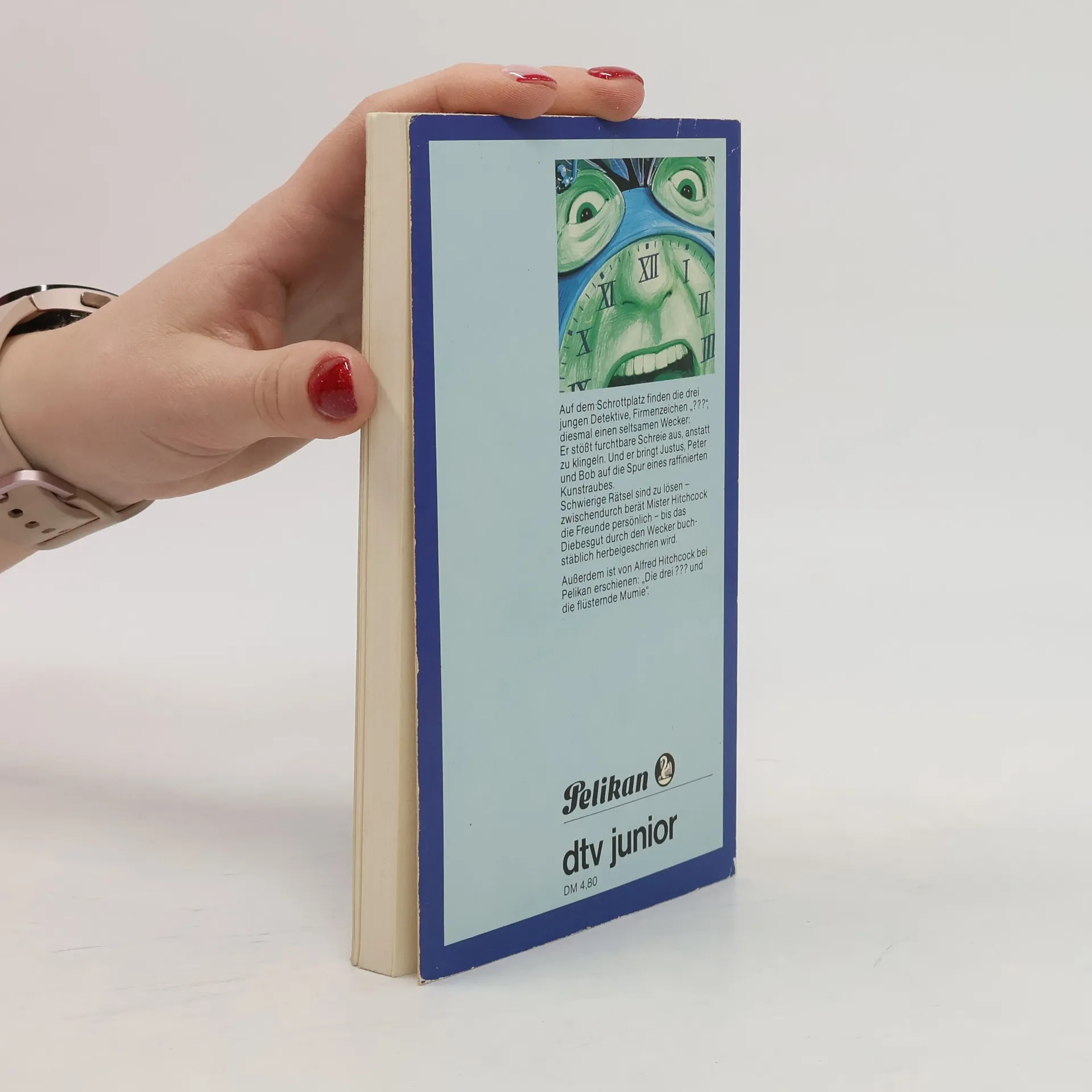 Auf dem Schrottplatz finden die drei jungen Detektive, Firmenzeichen "???", diesmal einen seltsamen Wecker: Er stößt furchtbare Schreie aus, statt zu klingeln. Und er bringt Justus, Peter und Bob auf die Spur eines raffinierten Kunstraubes. Schwierige Rätsel sind zu lösen - zwischendurch berät Mister Hitchcock die Freunde persönlich - bis das Diebesgut durch den Wecker buchstäblich herbeigeschrien wird.