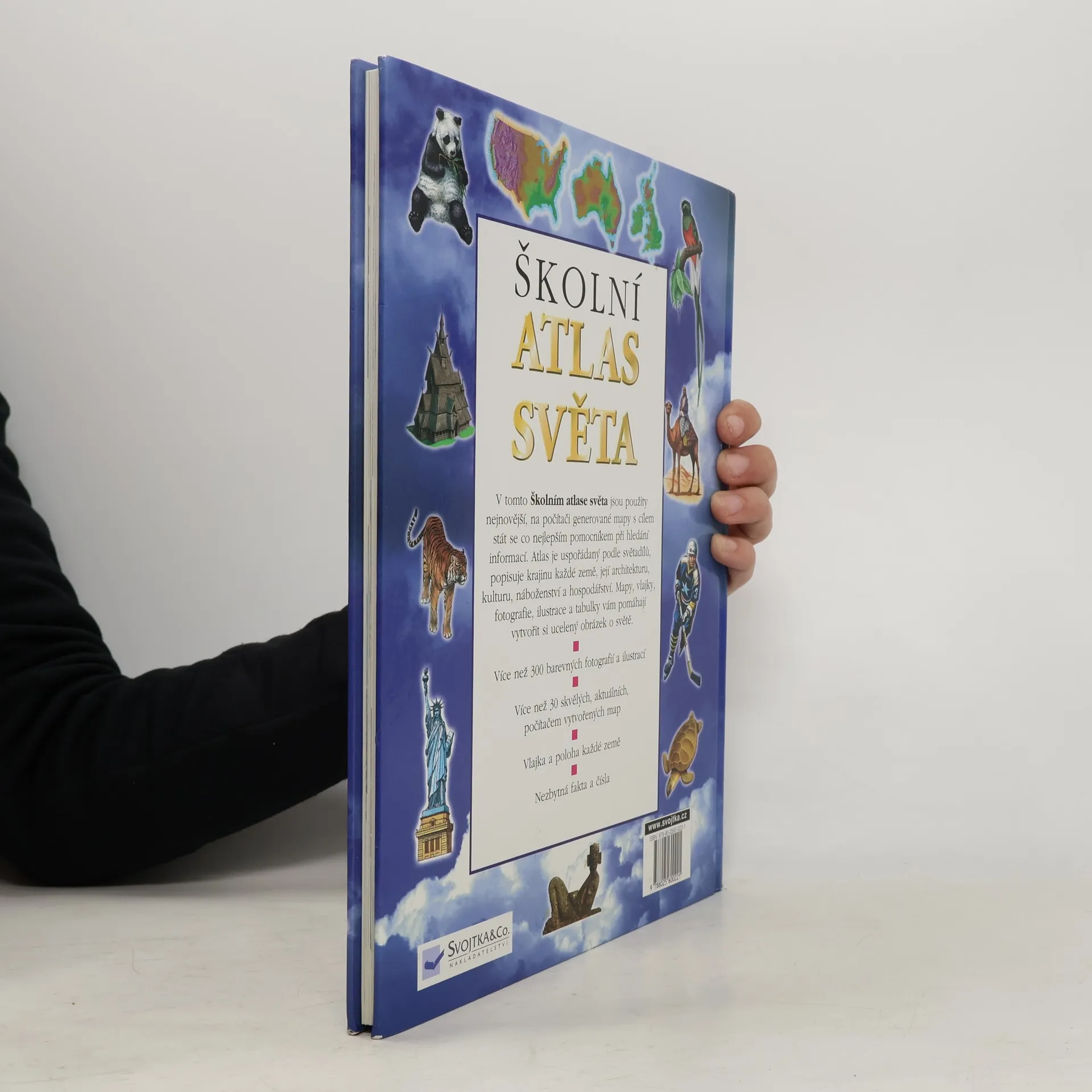 Cílem tohoto školního atlasu světa je stát se co nejlepším pomocníkem při hledání informací. Jsou v něm použity nejnovější mapy, je uspořádaný podle světadílů a popisuje krajinu každé země, její architekturu, kulturu, náboženství i hospodářství.