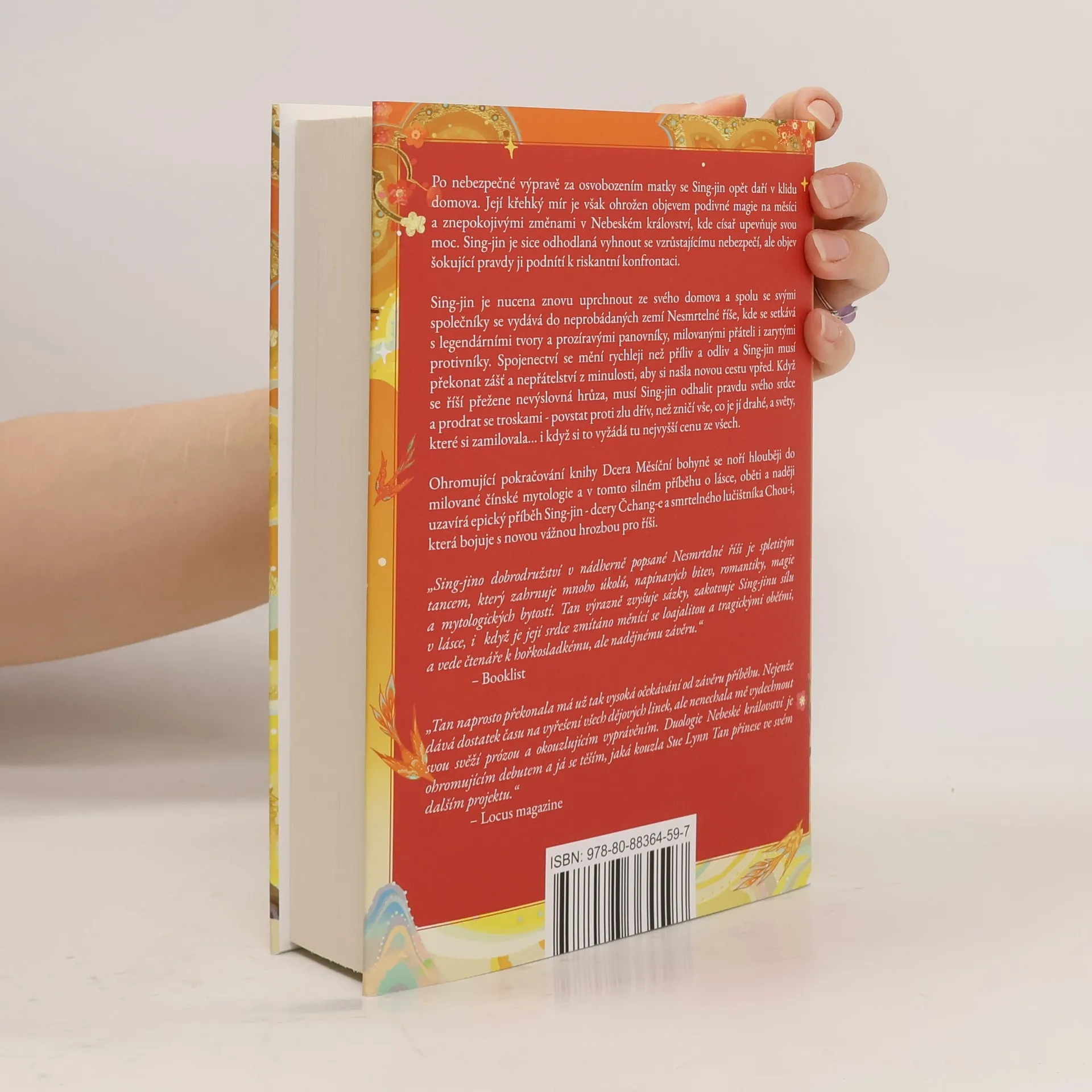 Po nebezpečné výpravě za osvobozením matky se Sing-jin opět daří v klidu domova. Její křehký mír je však ohrožen objevem podivné magie na měsíci a znepokojivými změnami v Nebeském království, kde císař upevňuje svou moc. Sing-jin je sice odhodlaná vyhnout se vzrůstajícímu nebezpečí, ale objev šokující pravdy ji podnítí k riskantní konfrontaci. Sing-jin je nucena znovu uprchnout ze svého domova a spolu se svými společníky se vydává do neprobádaných zemí Nesmrtelné říše, kde se setkává s legendárními tvory a prozíravými panovníky, milovanými přáteli i zarytými protivníky. Spojenectví se mění rychleji než příliv a odliv a Sing-jin musí překonat zášť a nepřátelství z minulosti, aby si našla novou cestu vpřed. Když se říší přežene nevýslovná hrůza, musí Sing-jin odhalit pravdu svého srdce a prodrat se troskami - povstat proti zlu dřív, než zničí vše, co je jí drahé, a světy, které si zamilovala... i když si to vyžádá tu nejvyšší cenu ze všech. Ohromující pokračování knihy Dcera Měsíční bohyně se noří hlouběji do milované čínské mytologie a v tomto silném příběhu o lásce, oběti a naději uzavírá epický příběh Sing-jin - dcery Čchang-e a smrtelného lučištníka Chou-i, která bojuje s novou vážnou hrozbou pro říši.