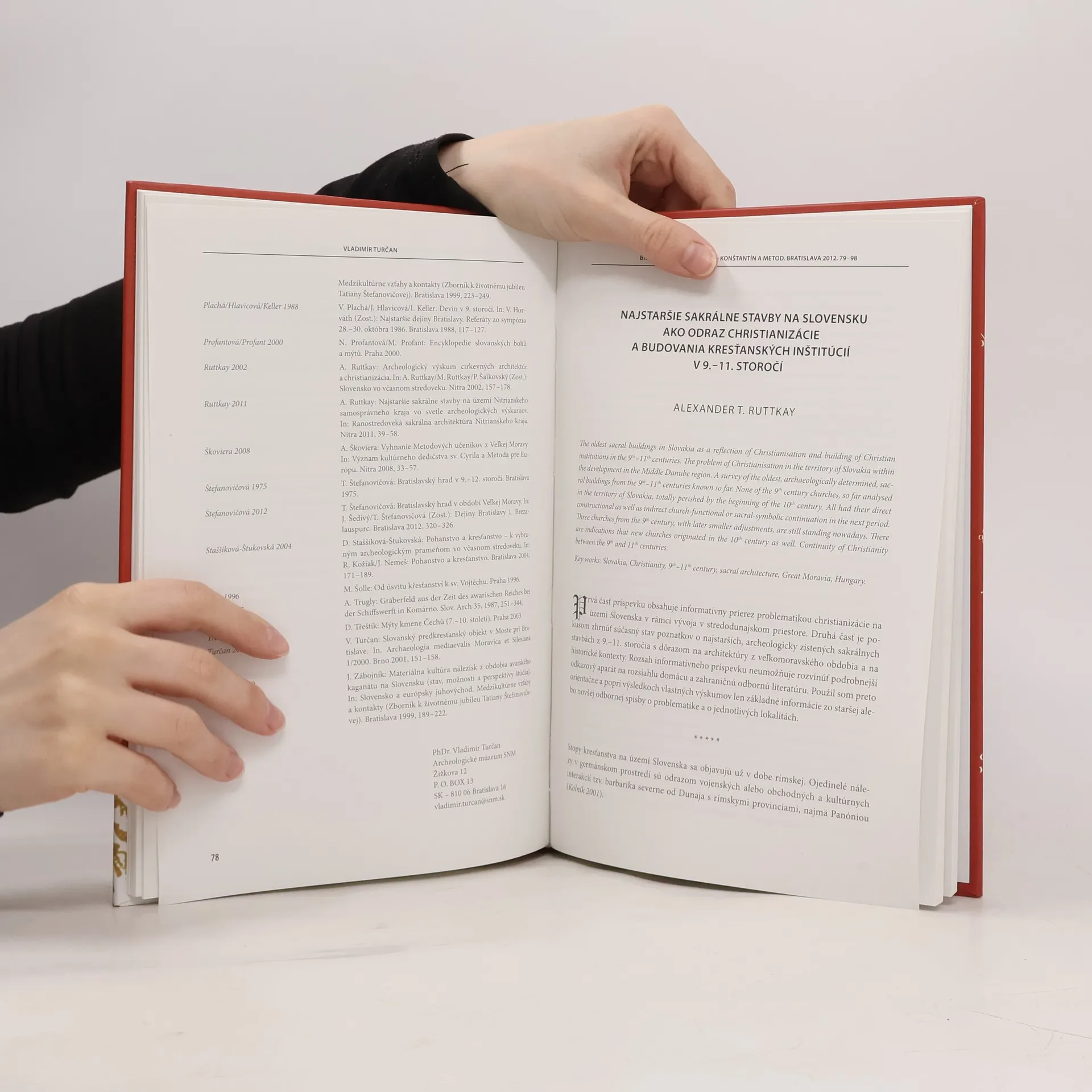 Príspevky z konferencieBratislava, 21. február 2013ZOSTAVOVATELIAMgr. Branislav Panis PhDr. Matej Ruttkay, CSc.PhDr. Vladimír TurčanAUTORITitus Kolník: Počiatky kresťanstva v strednom Podunajsku vo svetle historickýcha archeologických prameňovPeter Ivanič – Martin Hetényi: Geopolitická situácia priestoru strednej a juhovýchodnej Európyv ranom stredoveku Vladimír Turčan: Pôvodné slovanské náboženstvo a kristianizácia stredodunajských SlovanovAlexander T. Ruttkay: Najstaršie sakrálne stavby na Slovensku ako odraz christianizáciea budovania kresťanských inštitúcií v 9. – 11. StoročíMartin Vančo: Funkcie veľkomoravských kostolov vo vzťahu k pohrebiskámMatej Ruttkay: Mocenské centrá Nitrianskeho kniežatstvaPeter Bednár: Nitra v časoch pôsobenia sv. Konštantína-Cyrila a sv. MetodaJán Steinhübel: Moravania, Chorváti a Bulhari v plánoch pápežskej kúrie (860 – 880)Andrej Škoviera: Životy svätého Nauma Ochridského ako historické prameneDušan Škvarna: Cyrilo-metodský obraz v slovenskej kultúre 19. storočia. Premena tradície na kult a ich podobyAnna Vetráková: Oslavy tisícročného jubilea príchodu sv. Cyrila a sv. Metoda na Veľkú Moravuv roku 1863Adam Hudek: Cyrilo-metodská tradícia na Slovensku v 20. Storočí
