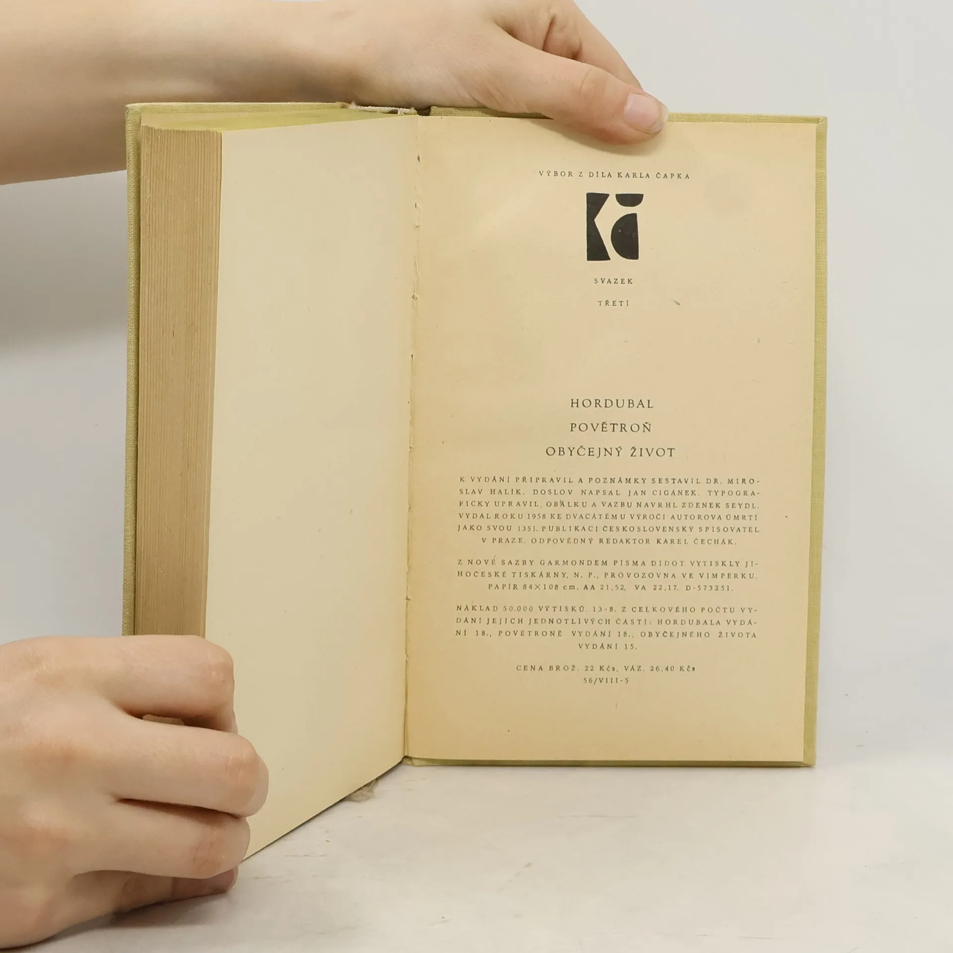 Hordubal. Povětroň. Obyčejný život, Karel Čapek