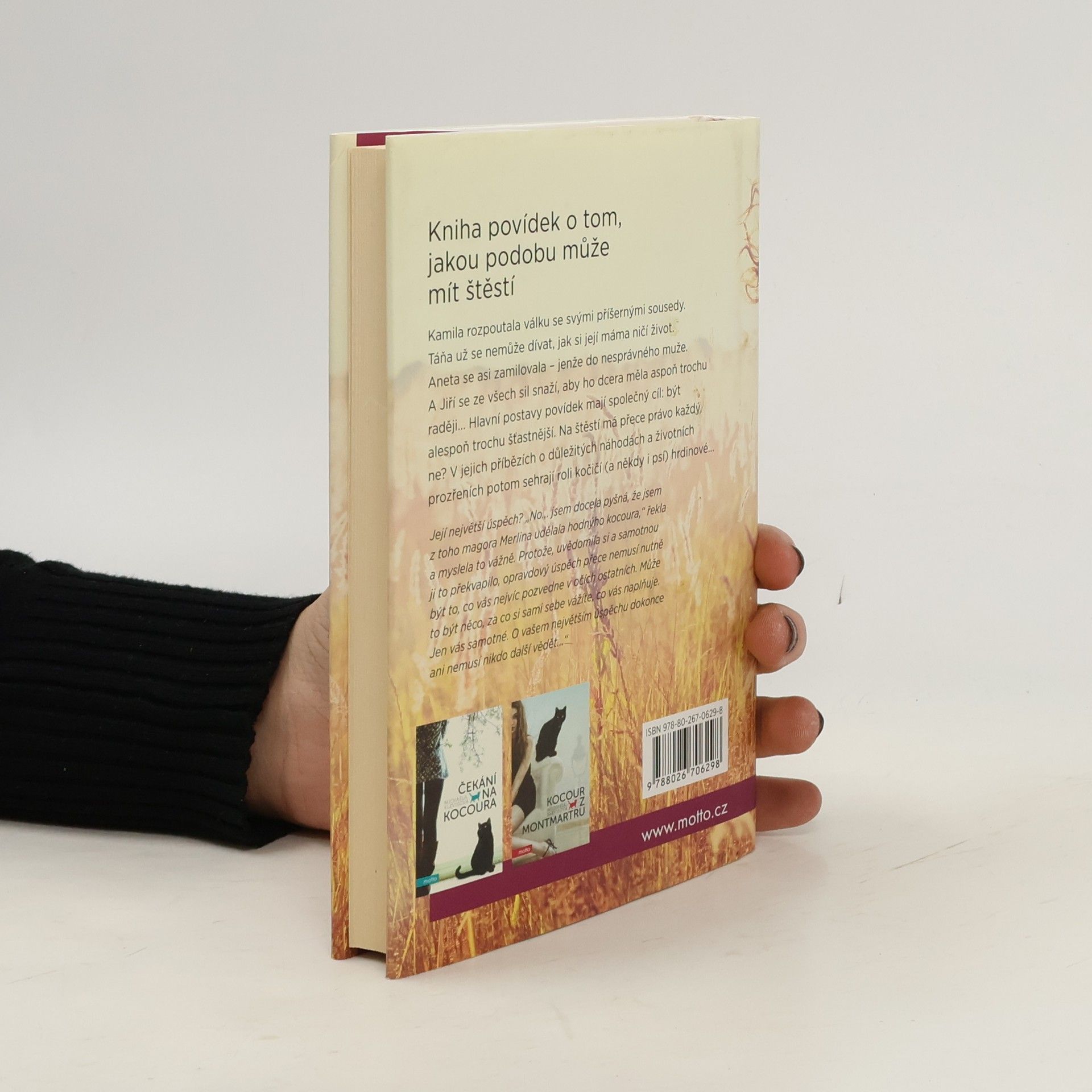 Kamila rozpoutala válku se svými příšernými sousedy. Táňa už se nemůže dívat, jak si její máma ničí život. Aneta se asi zamilovala – jenže do nesprávného muže. A Jiří se ze všech sil snaží, aby ho dcera měla aspoň trochu raději... Hlavní postavy povídek mají společný cíl: být alespoň trochu šťastnější. Na štěstí má přece právo každý, ne? V jejich příbězích o důležitých náhodách a životních prozřeních potom sehrají roli kočičí (a někdy i psí) hrdinové... Autorka ke knize dodává: Opravdový úspěch přece nemusí nutně být to, co vás nejvíc pozvedne v očích ostatních. Může to být něco, za co si sami sebe vážíte, co vás naplňuje. Jen vás samotné. nemusí nikdo další vědět...“