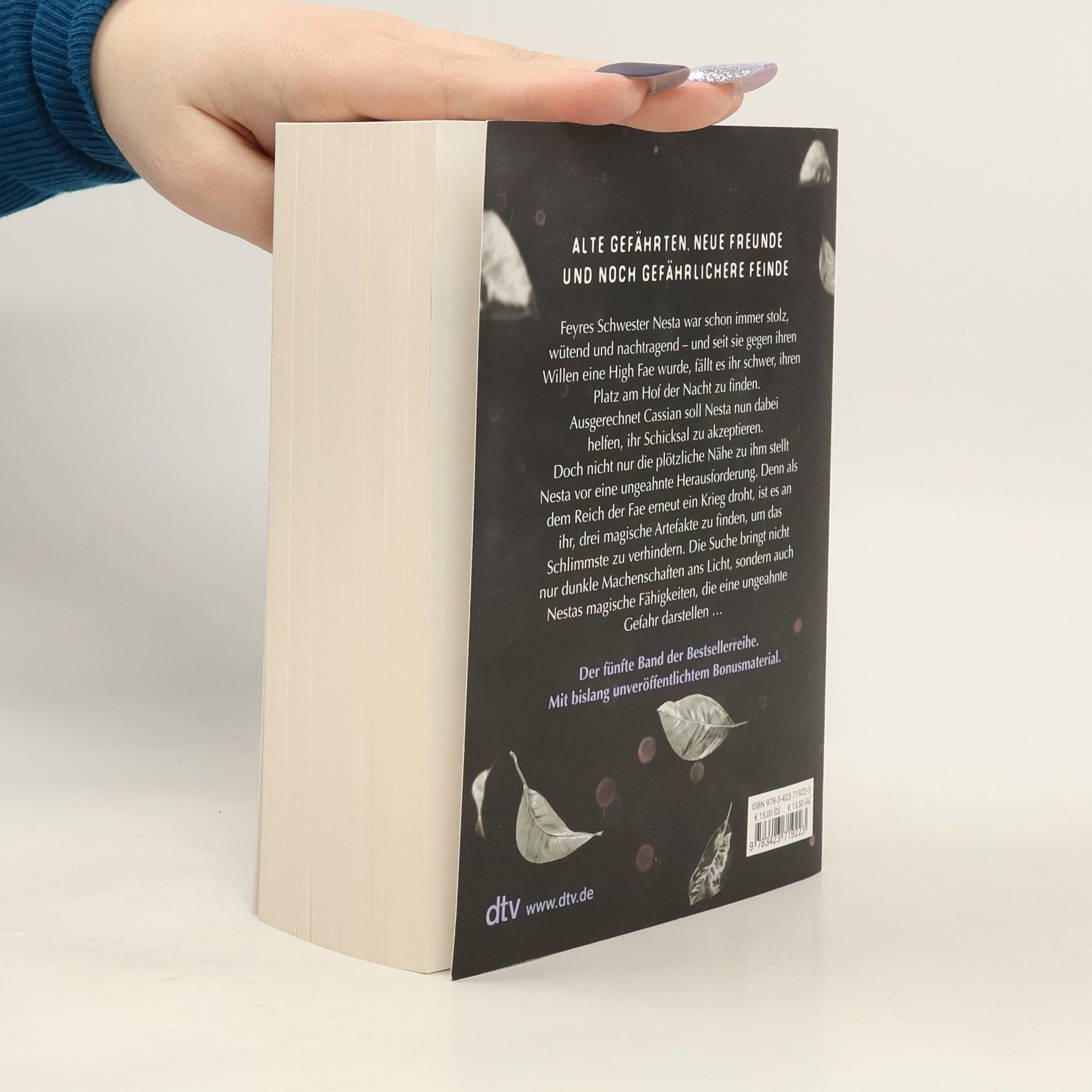 Alte Gefährten, neue Freunde und noch gefährlichere Feinde Das große Fantasy-Epos jetzt endlich im Taschenbuch – mit bisher unveröffentlichtem Bonusmaterial! Feyres Schwester Nesta war schon immer stolz, wütend und nachtragend – und seit sie gegen ihren Willen eine High Fae wurde, fällt es ihr schwer, ihren Platz am Hof der Nacht zu finden. Ausgerechnet Cassian soll Nesta nun dabei helfen, ihr Schicksal zu akzeptieren. Doch die plötzliche Nähe zu ihm stellt Nesta vor eine beinahe unerträgliche Herausforderung, denn noch immer kann und will sie ihren Gefühlen für Cassian nicht nachgeben. Als dem Reich der Fae erneut ein Krieg droht, liegt es an Nesta, drei magische Artefakte zu finden, um das Schlimmste zu verhindern. Doch die Suche bringt nicht nur dunkle Machenschaften ans Licht, sondern auch Nestas magische Fähigkeiten, die eine ungeahnte Gefahr darstellen … Knisterndes Enemies-to-Lovers-Epos mit viel Spice! Alle Bücher der ›Das Reich der sieben Höfe‹-Reihe: Band 1: Dornen und Rosen Band 2: Flammen und Finsternis Band 3: Sterne und Schwerter Band 4: Frost und Mondlicht Band 5: Silbernes Feuer Die Bände sind nicht unabhängig voneinander lesbar. Weitere Reihen von Sarah J. Maas bei dtv: ›Throne of Glass‹ ›Crescent City‹
