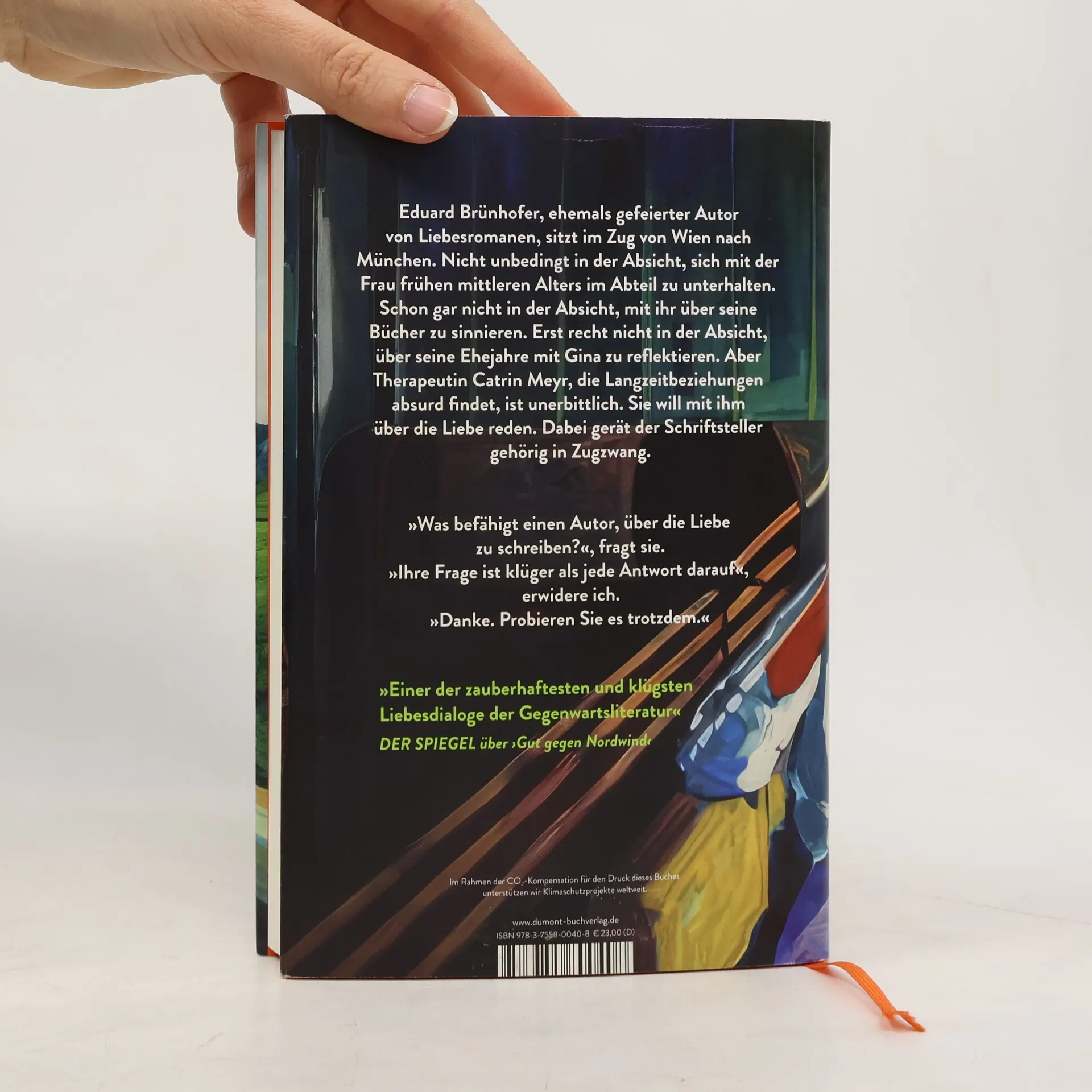Eduard Brünhofer, ehemals gefeierter Autor von Liebesromanen, sitzt im Zug von Wien nach München. Nicht unbedingt in der Absicht, sich mit der Frau frühen mittleren Alters im Abteil zu unterhalten. Schon gar nicht in der Absicht, mit ihr über seine Bücher zu sinnieren. Erst recht nicht in der Absicht, über seine Ehejahre mit Gina zu reflektieren. Aber Therapeutin Catrin Meyr, die Langzeitbeziehungen absurd findet, ist unerbittlich. Sie will mit ihm über die Liebe reden. Dabei gerät der Schriftsteller gehörig in Zugzwang. »Was befähigt einen Autor, über die Liebe zu schreiben?«, fragt sie. »Ihre Frage ist klüger als jede Antwort darauf«, erwidere ich. »Danke. Probieren Sie es trotzdem.« »[W]ir haben so viel Spaß wie 2006 bei Daniel Glattauers Riesenerfolg ›Gut gegen Nordwind‹.« Elke Heidenreich, BUNTE »Einer der zauberhaftesten und klügsten Liebesdialoge der Gegenwartsliteratur« DER SPIEGEL über ›Gut gegen Nordwind‹