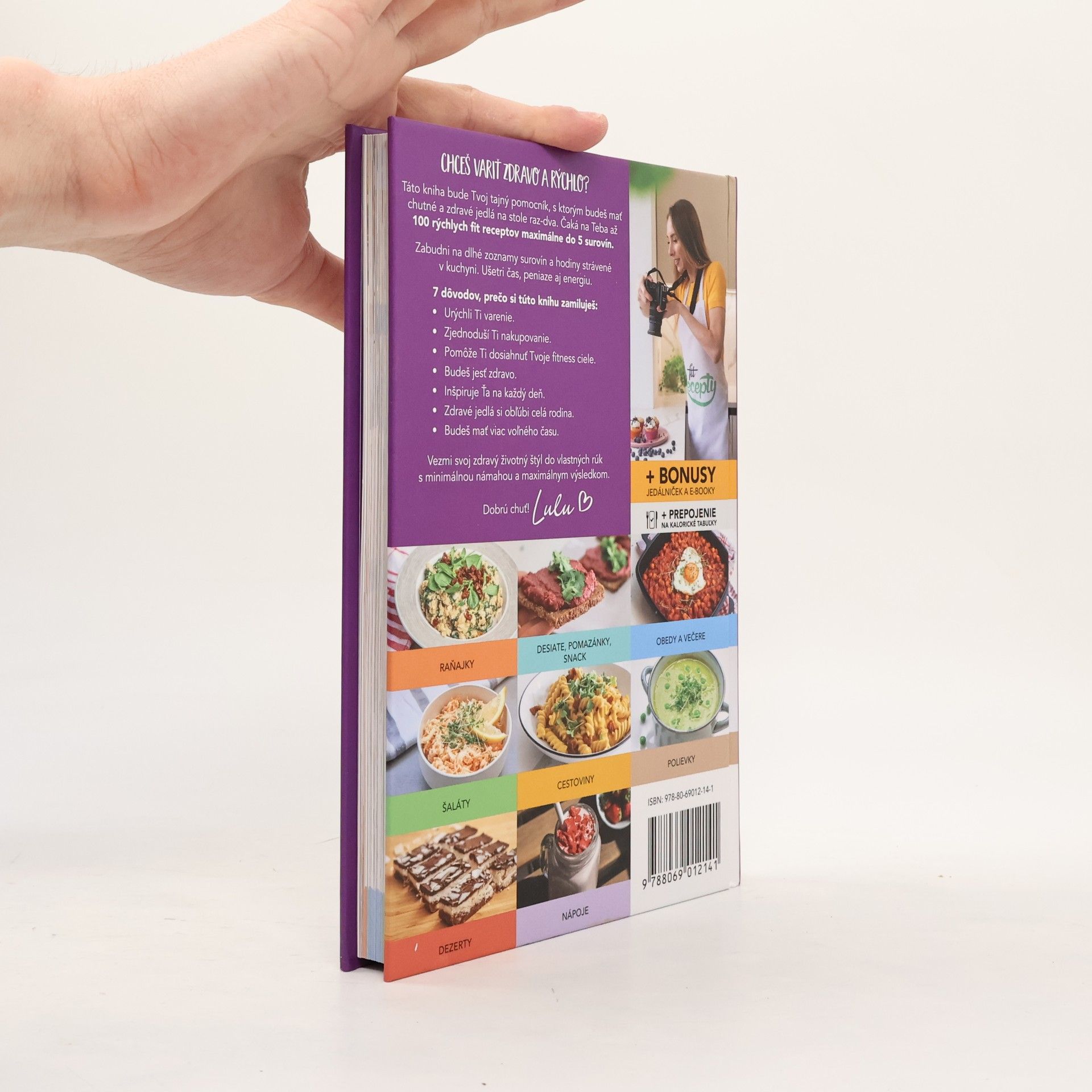 Táto kniha bude Tvoj tajný pomocník, s ktorým budeš mať chutné a zdravé jedlá na stole raz- dva. Čaká v nej na Teba až 100 rýchlych fit receptov maximálne do 5 surovín. Zabudni na dlhé zoznamy surovín a hodiny strávené v kuchyni. Ušetri čas, peniaze aj energiu s jedlami, ktoré si zvládneš pripraviť za pár minút. Napojenie na aplikáciu Kalorické tabuľky Ti uľahčí dosahovanie fitness cieľov a ku knihe dostaneš okrem iných bonusov aj fit jedálniček.