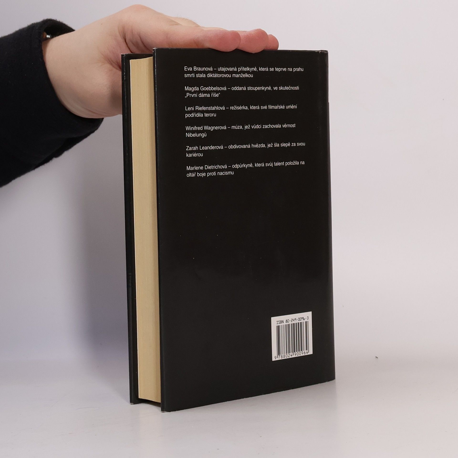 Poutavé příběhy šesti žen, jejichž osudy byly úzce spojeny s německou třetí říší či samotným Adolfem Hitlerem. Autor se nespokojil s pouhými životopisy, pokusil se o širší pohled, psychologický portrét šesti prominentních žen třetí říše. Utajovaná milenka Eva Braunová, do poslední chvíle vůdci oddaná "první dáma říše" Magda Goebbelsová, nejvýznamnější režisérka třetí říše Leni Riefenstahlová, snacha Richarda Wagnera Winifred Wagnerová, která si ani po válce nechtěla přiznat pravou povahu svého idolu, švédská umělkyně Zarah Leanderová... Výjimkou je Marlene Dietrichová, největší německá filmová hvězda 20. století, která jako jediná z tohoto výběru dokázala vzdorovat Hitlerovým svodům a opustila Německo. Zajímavé jsou vložené citáty a poznámky spolupracovníků či příbuzných a úryvky z deníků. Fotografie, seznam literatury, rejstřík.... celý text