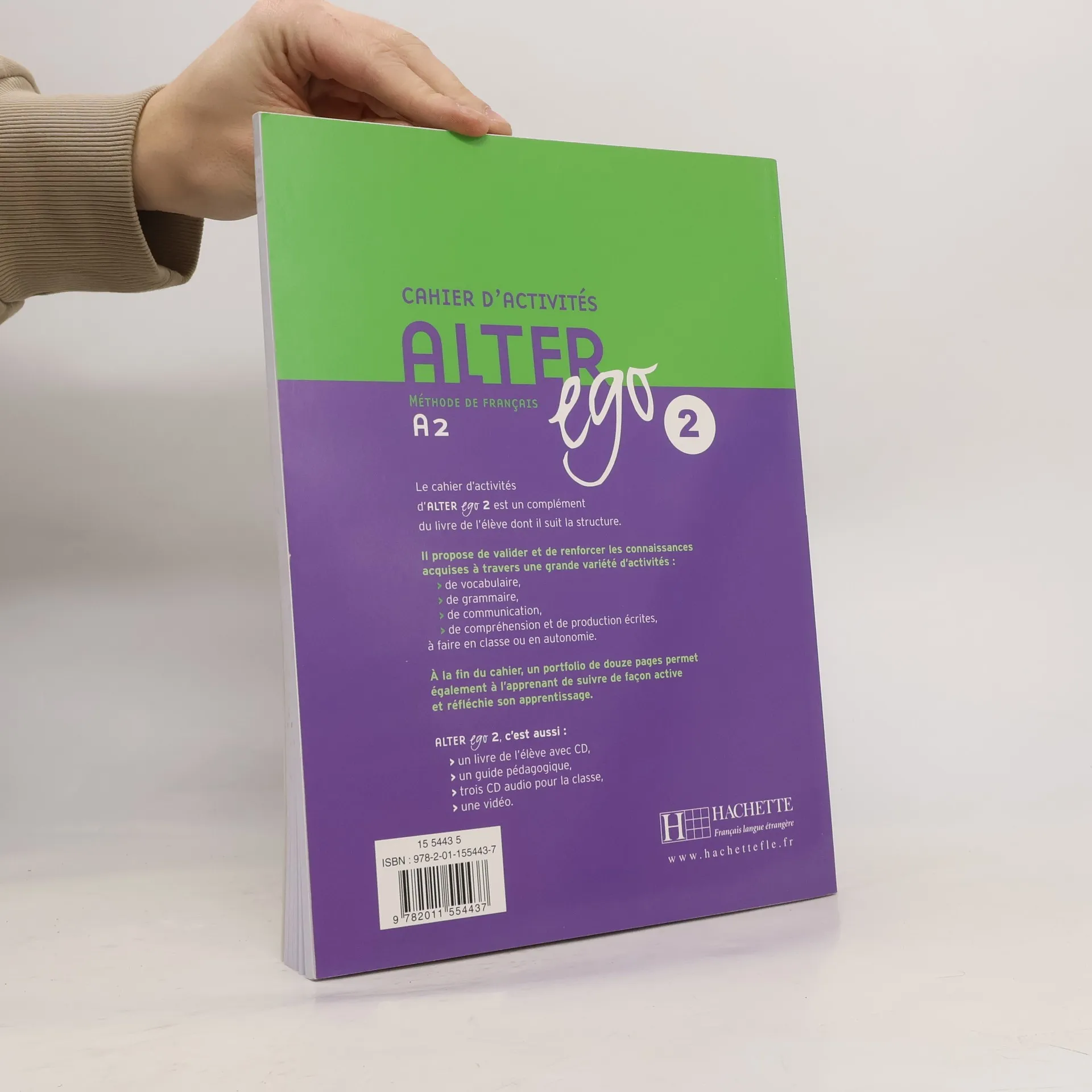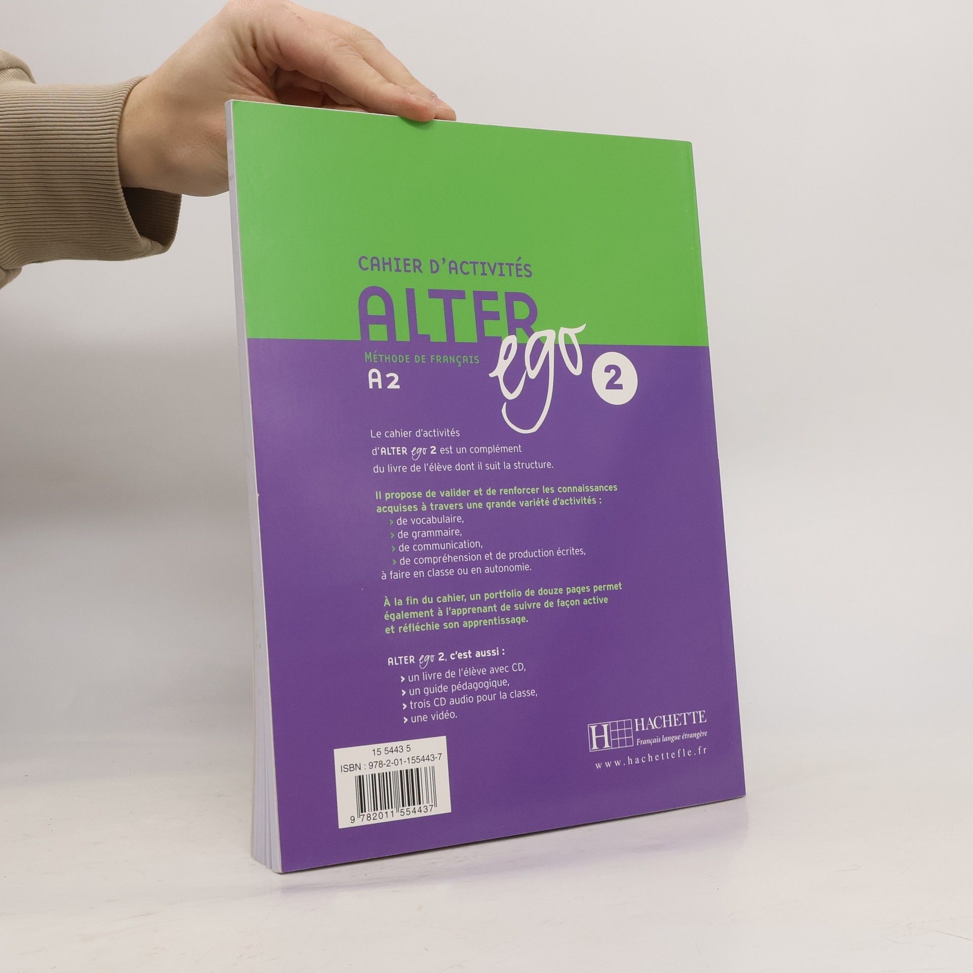 Le cahier d'activités d'ALTER ego 2 est un complément du livre de l'élève dont il suit la structure. Il propose de valider et de renforcer les connaissances acquises à travers une grande variété d'activités : de vocabulaire, de grammaire, de communication, de compréhension et de production écrites, à faire en classe ou en autonomie. A la fin du cahier, un portfolio de douze pages permet également à l'apprenant de suivre de façon active et réfléchie son apprentissage.
