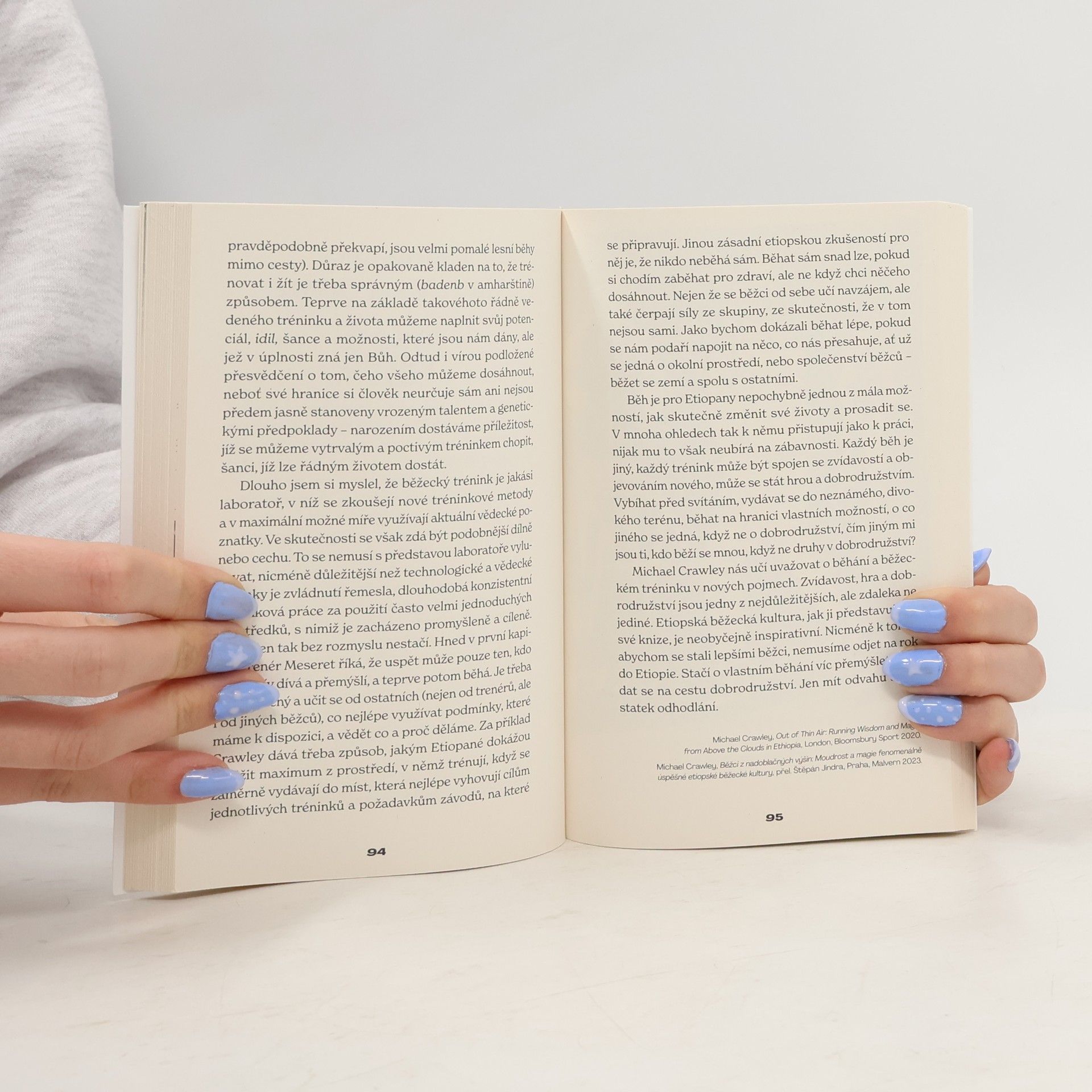 Co nás nutí k tomu, abychom si znovu a znovu nazouvali boty a vybíhali ze svých domovů, navzdory bolesti, nepřízni počasí nebo nedostatku času? Abychom se jen tak rozeběhli ze svahu, napříč loukou, vyběhli na kopec nebo se pokusili co nejrychleji oběhnout blok domů? Jan Havlíček v esejích,recenzích a poznámkách původně psaných pro běžecký časopis B žádnou definitivní odpověď nedává. Ukazuje však, jakým způsobem je běh součástí našich životů, jak nám umožňuje postavit se věcem, kterým nelze utéct, a jak se díky běhu dostáváme do kontaktu s tím, co nás přesahuje. A to je mnohem víc, než bychom si při dvanáctiminutovce v hodině tělesné výchovy mysleli.