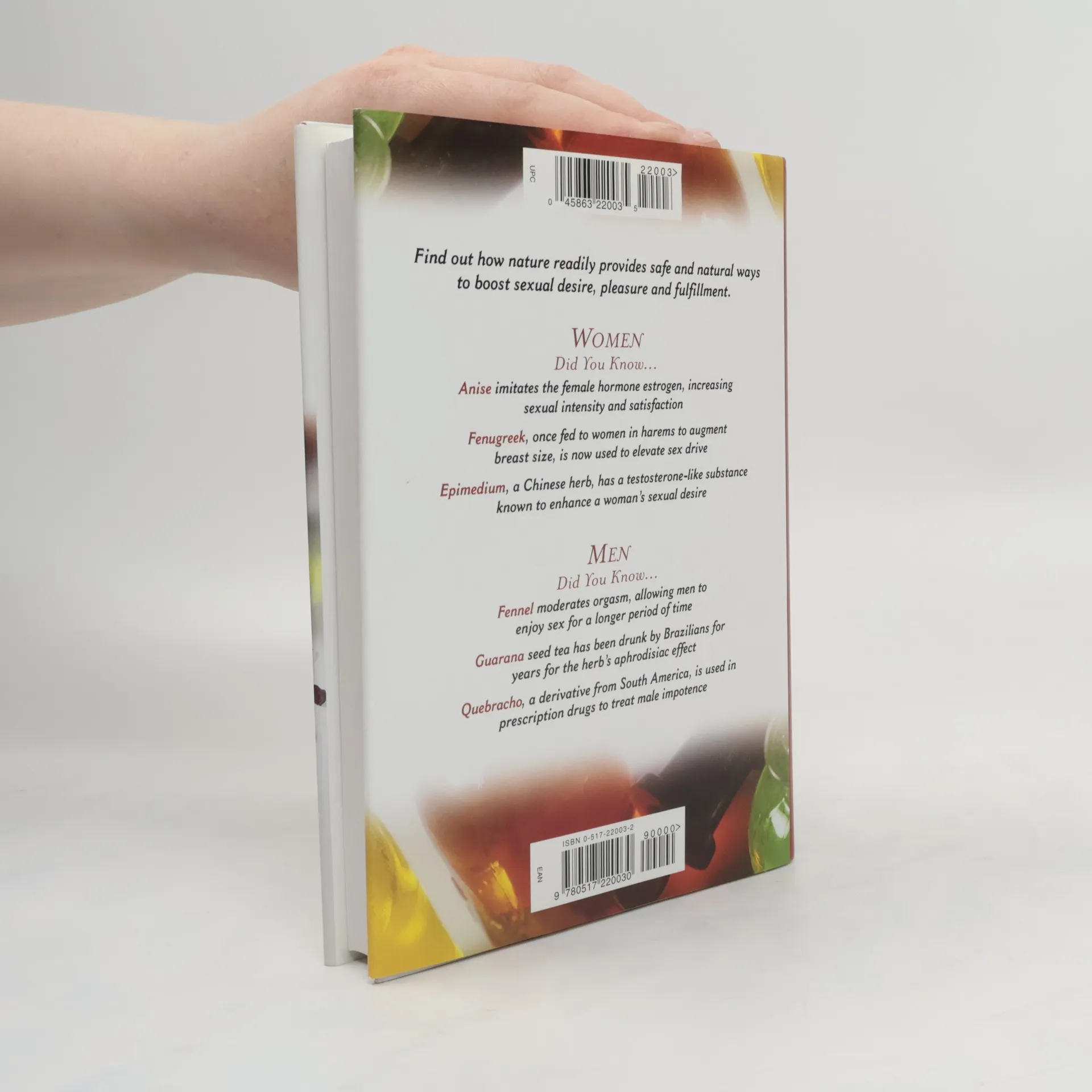 Even with the popularity of the drug Viagra, few realize that nature already provides safe, natural ways to boost sexual desire, pleasure and fulfillment. Nature's sexual enhancers for both men and women are detailed and explained in this unique and enlightening book.For example, anise is shown to imitate the female hormone estrogen, increasing sexual intensity and satisfaction, and guarana seed teas are a proven aphrodisiac. Many more facts and hints about nature's way to increase sexual drive and pleasure, treat impotence, ease "life changes" and improve lifestyle are all contained in this informative volume.