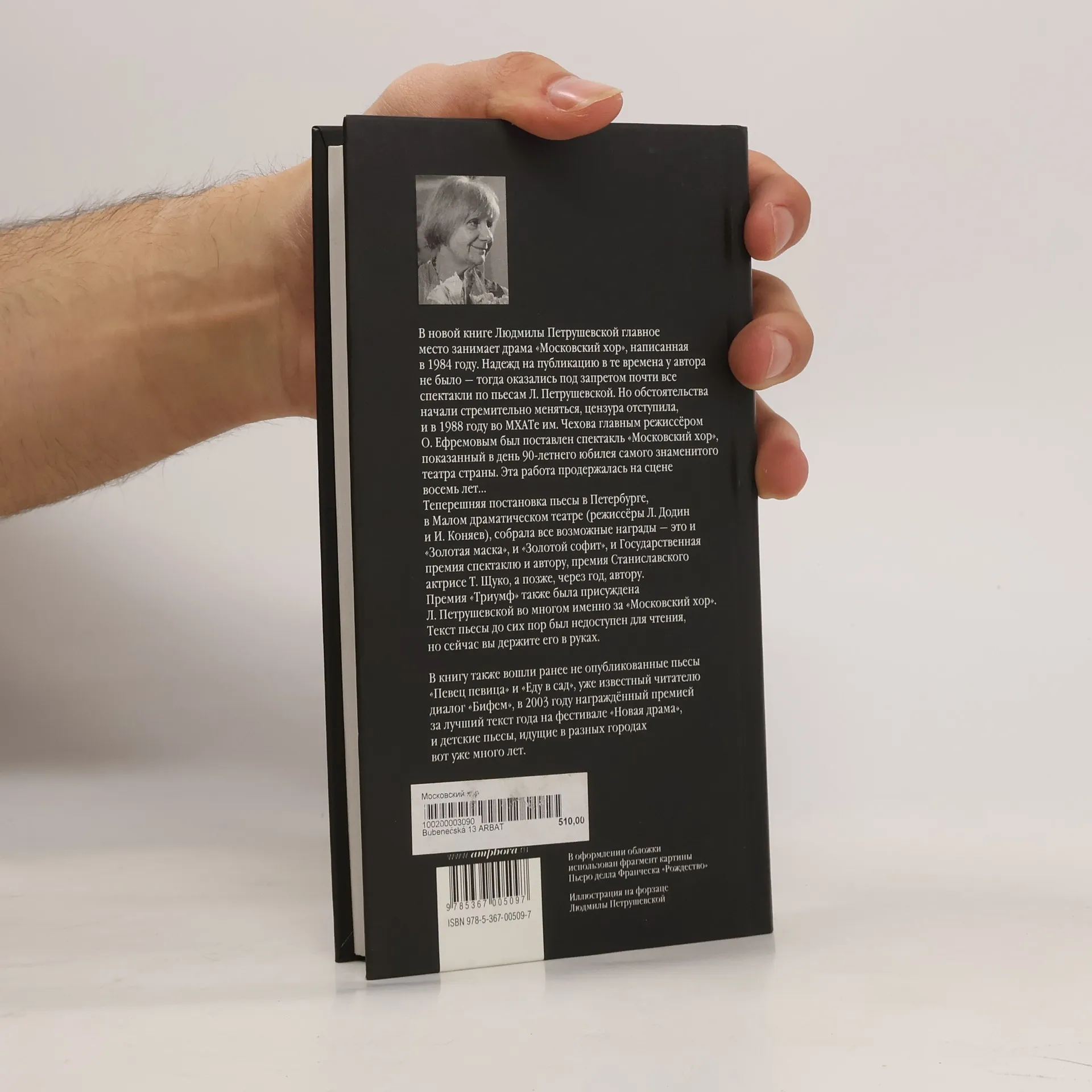 В книгу вошли пьесы Людмилы Петрушевской, часть из которых неизвестна читающей и театральной публике. Это, прежде всего, знаменитый "Московский хор", получивший множество премий (после постановки в петербургском Малом драматическом театре) и публикующийся впервые. В сборнике есть и другой лауреат - пьеса "Бифем", спектакль по которой был награжден премией за лучший текст года на фестивале "Новая драма" в 2003 г. Вошли в книгу и пьесы, недавно поставленные ("Певец певица"), и совершенно новые ("Еду в сад"). В разделе "Детский театр" представлены пьесы, уже много лет идущие в разных городах страны.