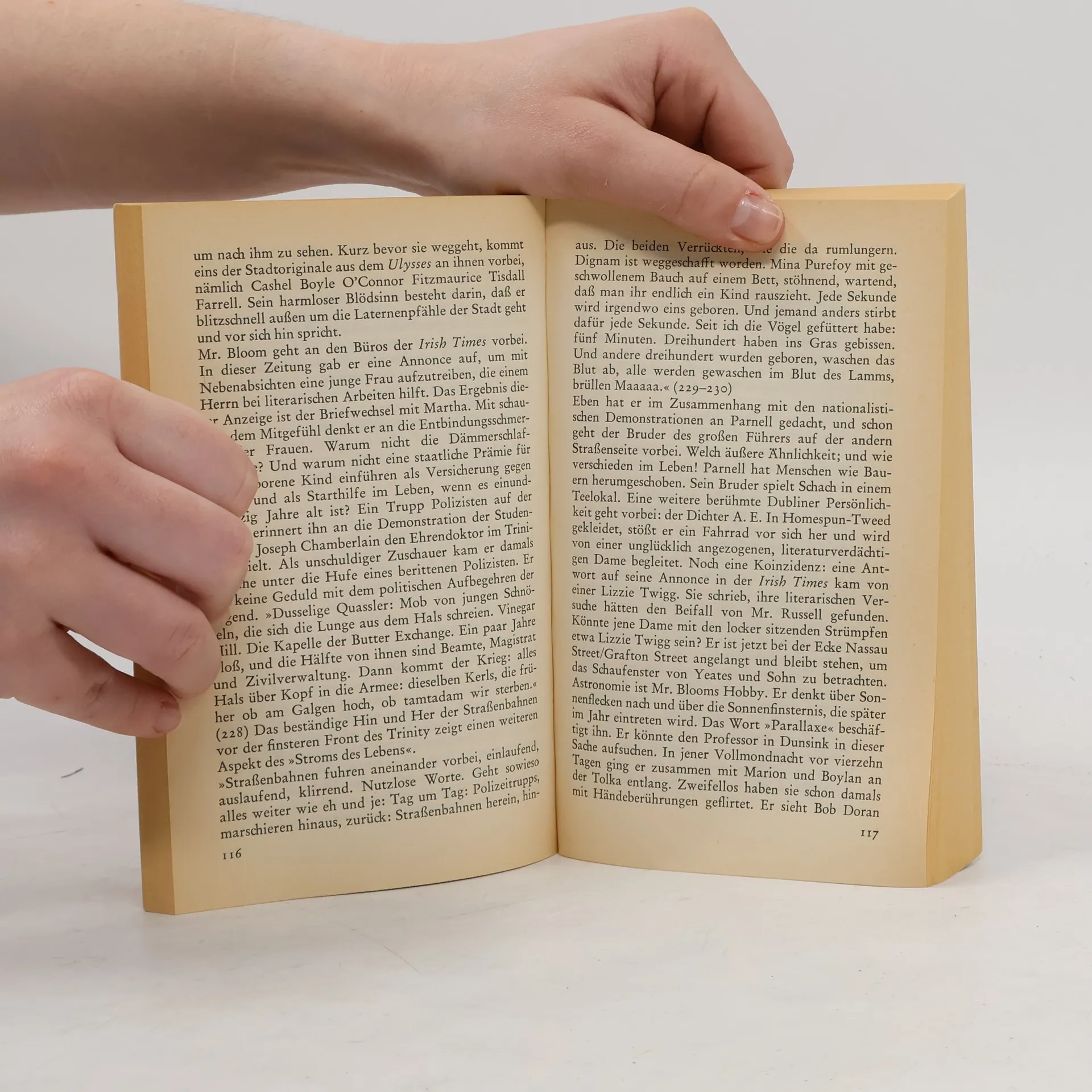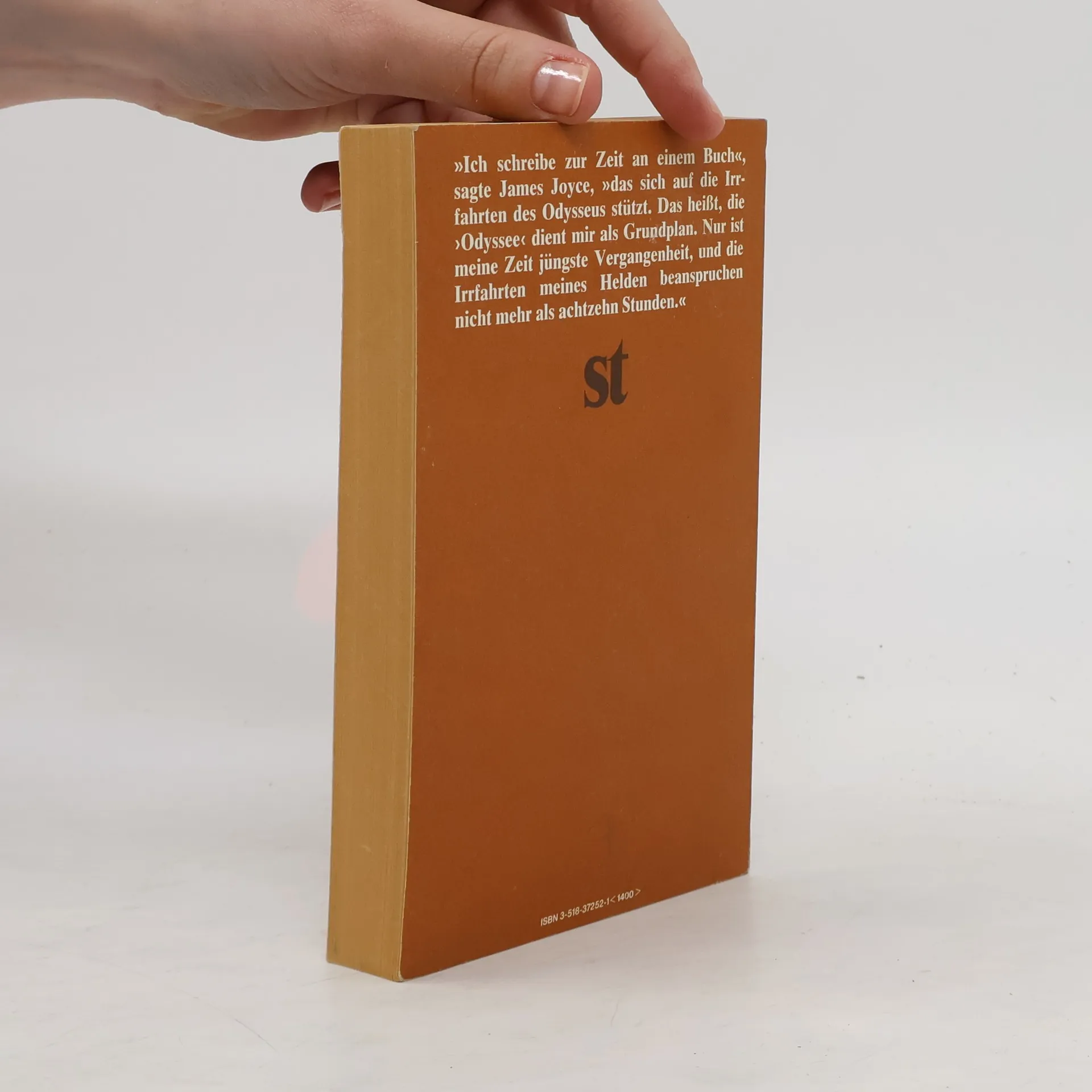 [Rückentext:] "Ich schreibe zur Zeit an einem Buch", sagte James Joyce, "das sich auf die Irrfahrten des Odysseus stützt. Das heißt, die 'Odyssee' dient mir als Grundplan. Nur ist meine Zeit jüngste Vergangenheit, und die Irrfahrten meines Helden beanspruchen nicht mehr als achtzehn Stunden.