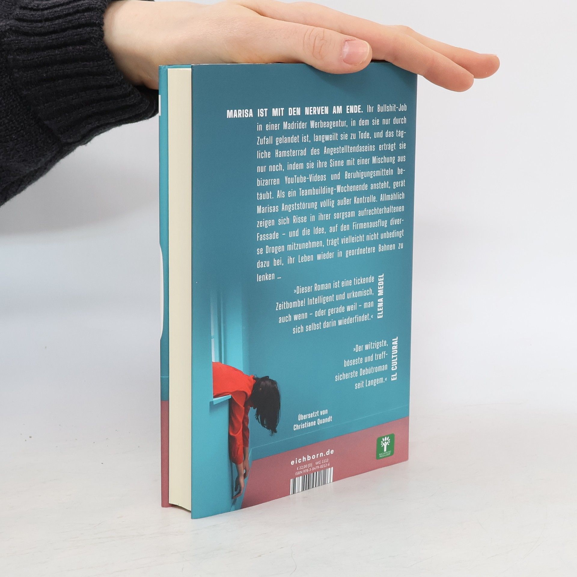 Marisa ist mit den Nerven am Ende. Ihr Bullshit-Job in einer Madrider Werbeagentur, in dem sie nur durch Zufall gelandet ist, langweilt sie zu Tode, und das tägliche Hamsterrad des Angestelltendaseins erträgt sie nur noch, indem sie ihre Sinne mit einer Mischung aus bizarren YouTube- Videos und Beruhigungsmitteln betäubt. Als ein Teambuilding-Wochenende ansteht, gerät Marisas Angststörung völlig außer Kontrolle. Allmählich zeigen sich Risse in ihrer sorgsam aufrechterhaltenen Fassade - und die Idee, auf den Firmenausflug diverse Drogen mitzunehmen, trägt vielleicht nicht unbedingt dazu bei, ihr Leben wieder in geordnetere Bahnen zu lenken ...