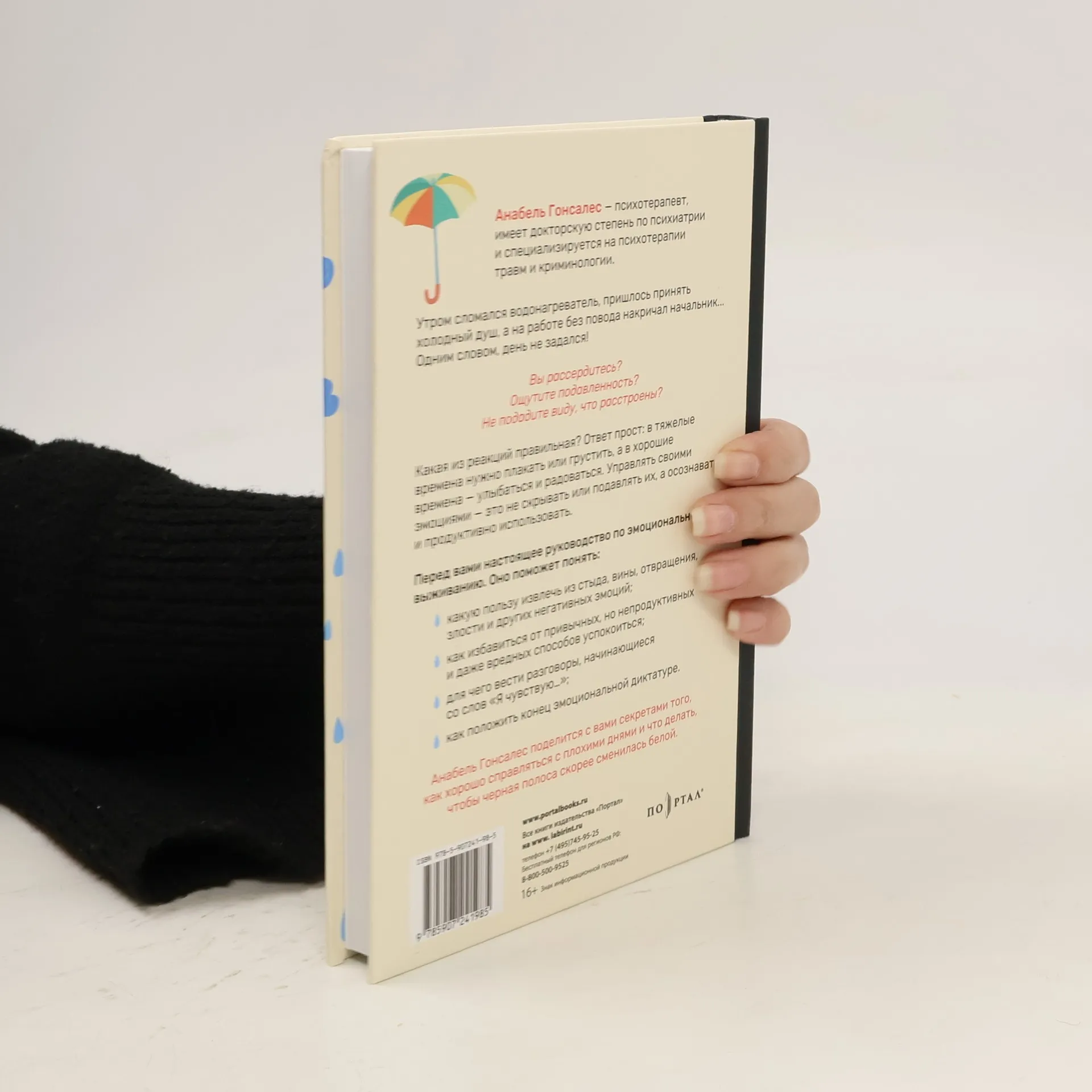 Утром сломался водонагреватель, пришлось принять холодный душ, а на работе без повода накричал начальник... Одним словом, день не задался! Вы рассердитесь? Ощутите подавленность? Не подадите виду, что расстроены? Какая из реакций правильная?Ответ прост: в тяжелые времена нужно плакать или грустить, а в хорошие времена - улыбаться и радоваться. Управлять своими эмоциями - это не скрывать или подавлять их, а осознавать и продуктивно использовать.Перед вами настоящее руководство по эмоциональному выживанию. Оно поможет понять:- Какую пользу извлечь из стыда, вины, отвращения, злости и других негативных эмоций?- Как избавиться от привычных, но непродуктивных и даже вредных способов успокоиться?- Для чего вести разговоры, начинающиеся со слов "Я чувствую…"?- Как положить конец эмоциональной диктатуре?Анабель Гонсалес поделится с вами секретами того, как хорошо справляться с плохими днями и что делать, чтобы черная полоса скорее сменилась белой.