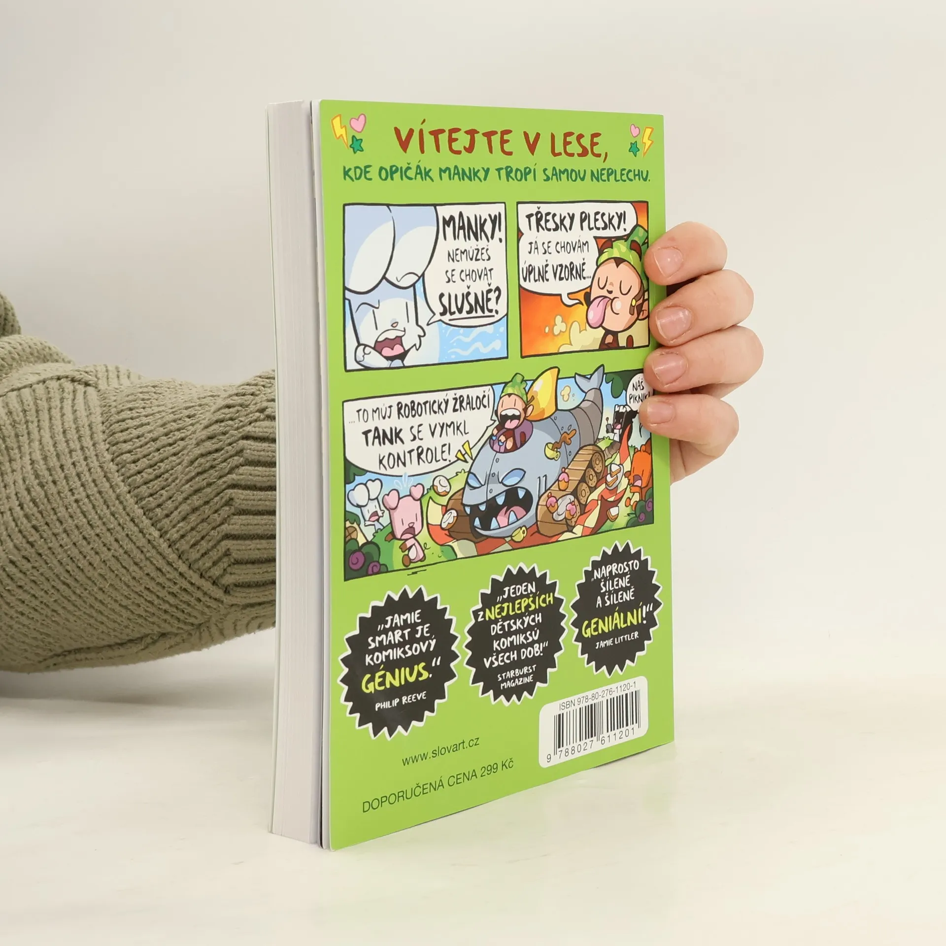Jamie Smart je podle všech komiksový génius. Sedí si doma v Anglii u počítače a vymýšlí jeden příběh za druhým. Prý se občas ztratí na procházce se psem, ale ztráta času to není. Než se zase najde, má v hlavě nový příběh. Jeho bílý králík Bany to nemá lehké. Do lesa, kde si v pohodičce žije i se svými kamarády, se mu nasáčkoval opičák Manky. Havaroval tam s raketou a má v úmyslu si zde založit svůj nový domov - Opičánii. Prohlásí, že Bany musí ze svého domova prostě vypadnout. A v poklidném lese je najednou naprostý chaos. Souboj králíka s opičákem posedlým technikou a různými přístroji je plný dobrodružství, napětí, překvapení, zábavy a legrace (hlavně z pohledu potrhlého Mankyho), ale Banymu občas fakt není co závidět. Ještě že mu pomáhají jeho kamarádi - prasátko a veverka. Ztřeštěných akcí se účastní i vynálezce skunk s bujnou fantazií, akční bobr, lišák a kovový Steve. Barevné a dynamické kresby plné zvratů s vtipnými zápletkami jistě potěší všechny fandy komiksu a humoru. Ale pozor, příběhy jsou návykové! Naštěstí bude pokračování…